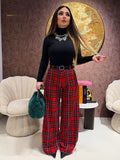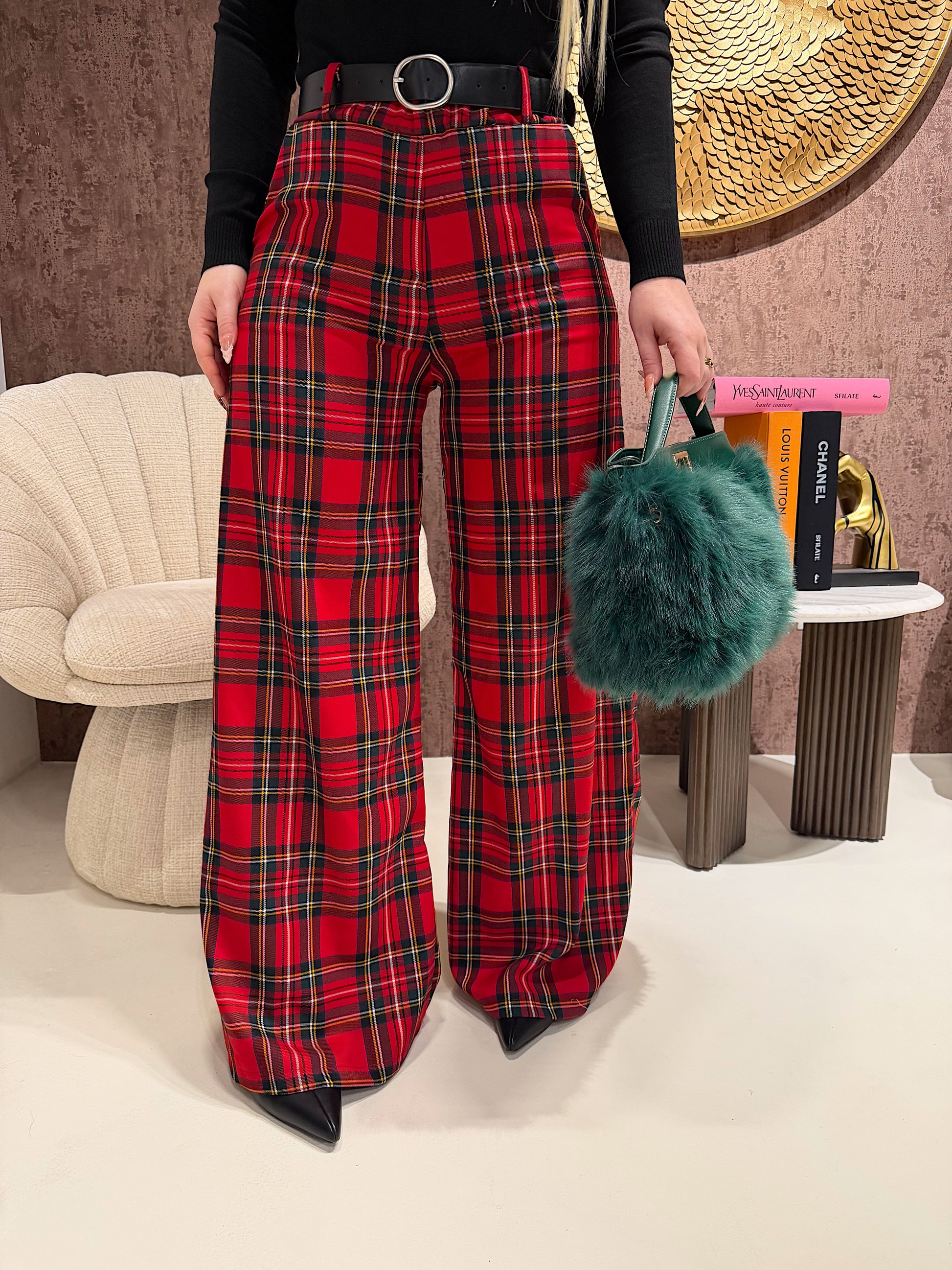 Il nostro moderno pantalone scozzese con gamba larga è l'ultima parola in stile e comfort. Con la sua cintura regolabile, questo pantalone scozzese è perfetto per adattarsi alla tua vita quotidiana. Goditi il look classico e senza tempo con un tocco di modernità grazie alla nostra gamba larga.