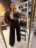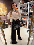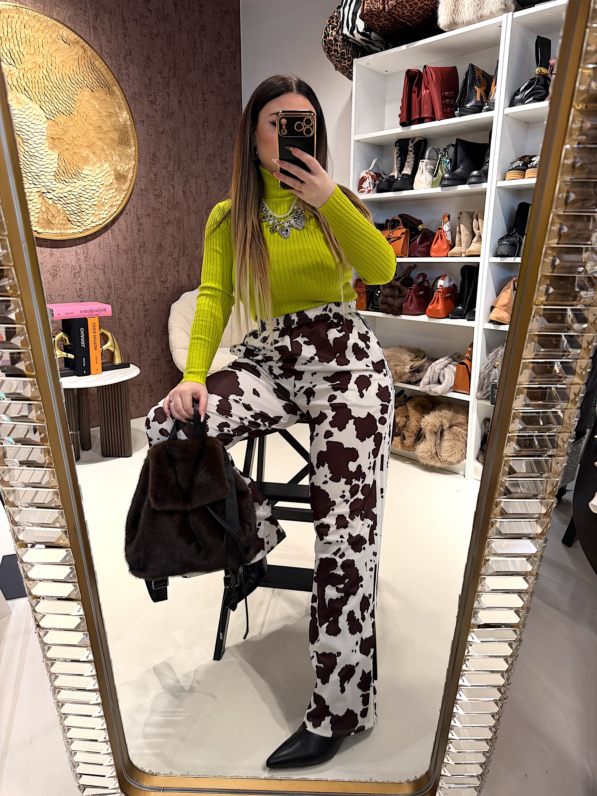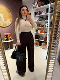 Puoi abbinarlo a una felpa oversize e sneakers per un look rilassato, oppure a un top corto e giacca di pelle per uno stile street più deciso.