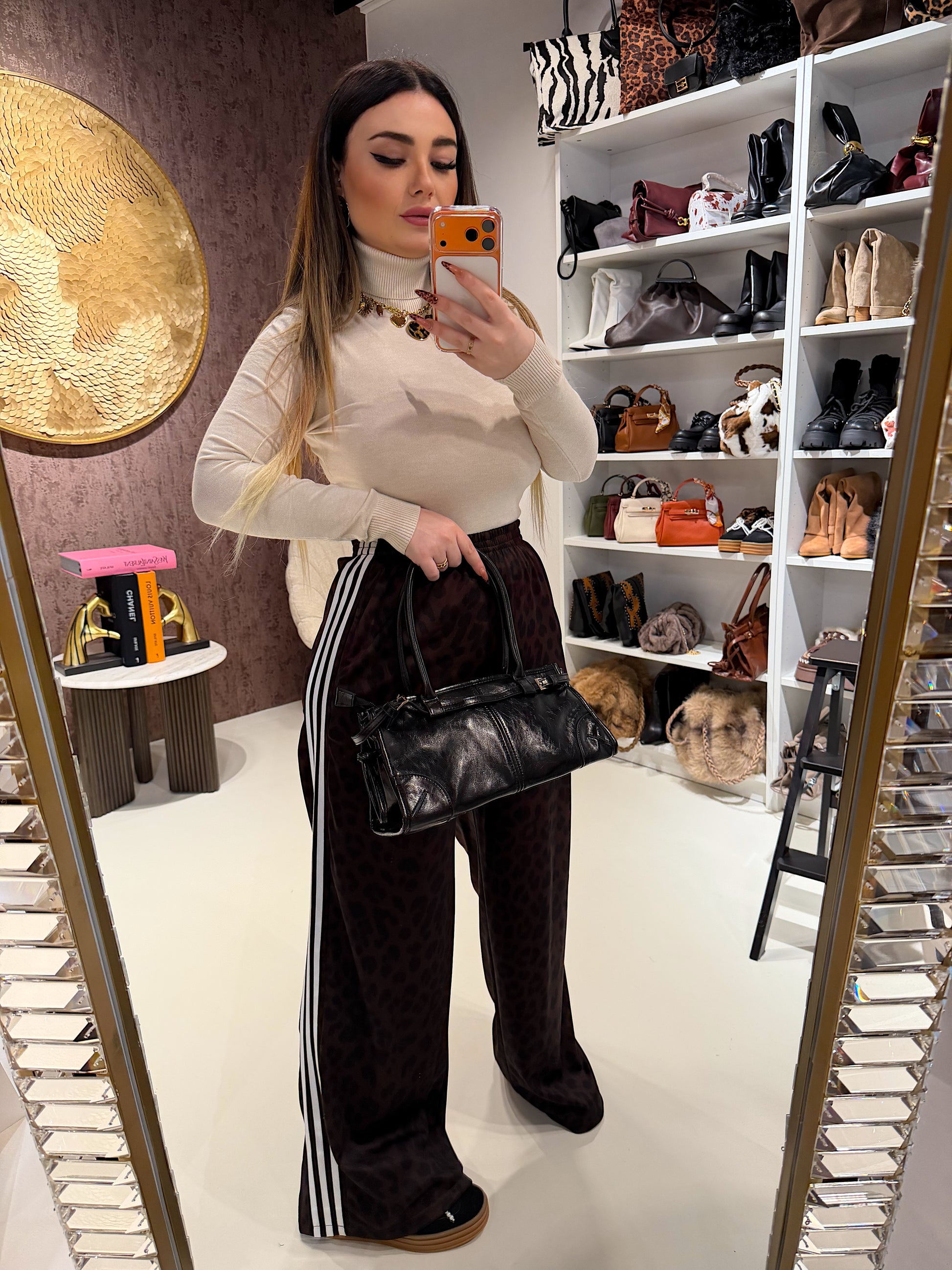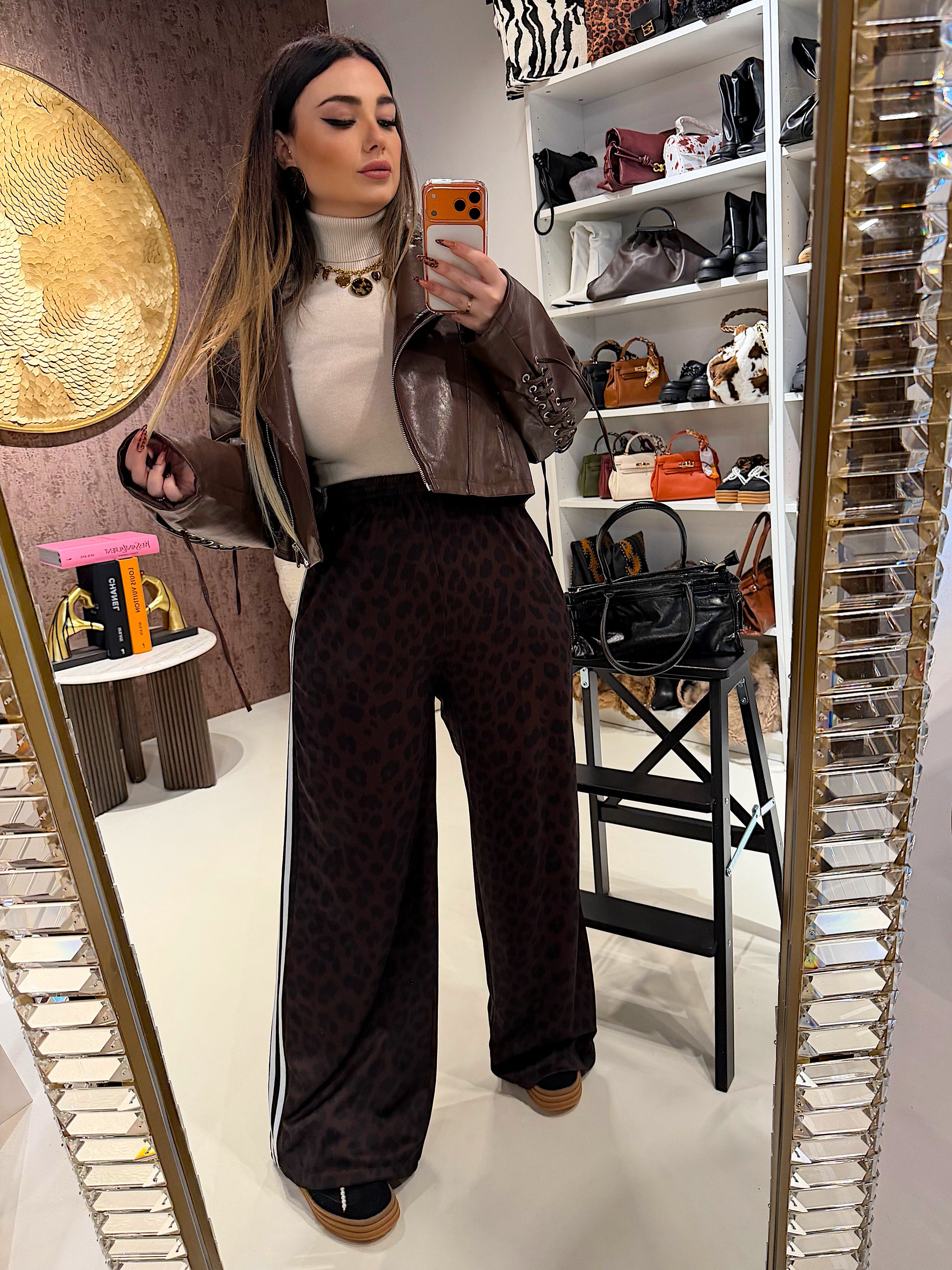 Comodo, trendy e super versatile — il nostro Pantalone Sporty è il must-have perfetto per creare look casual ma curati. Realizzato in tessuto morbido e fluido, presenta una vestibilità ampia con elastico in vita e le iconiche bande laterali bianche che slanciano la figura e donano un tocco sporty-chic.