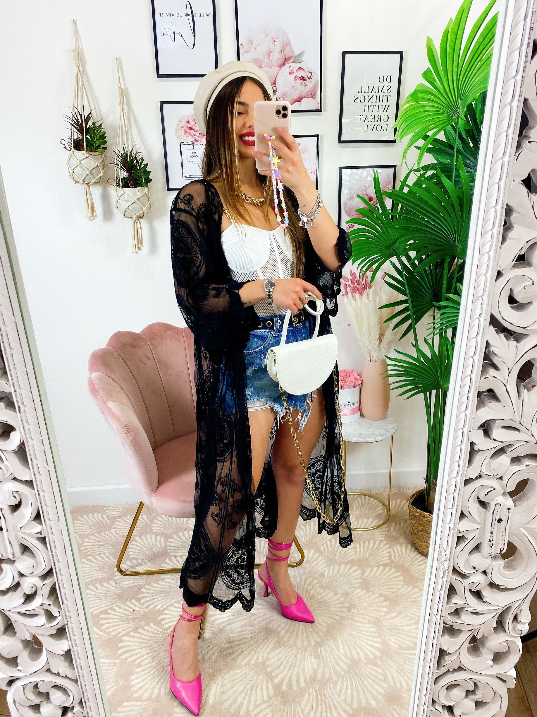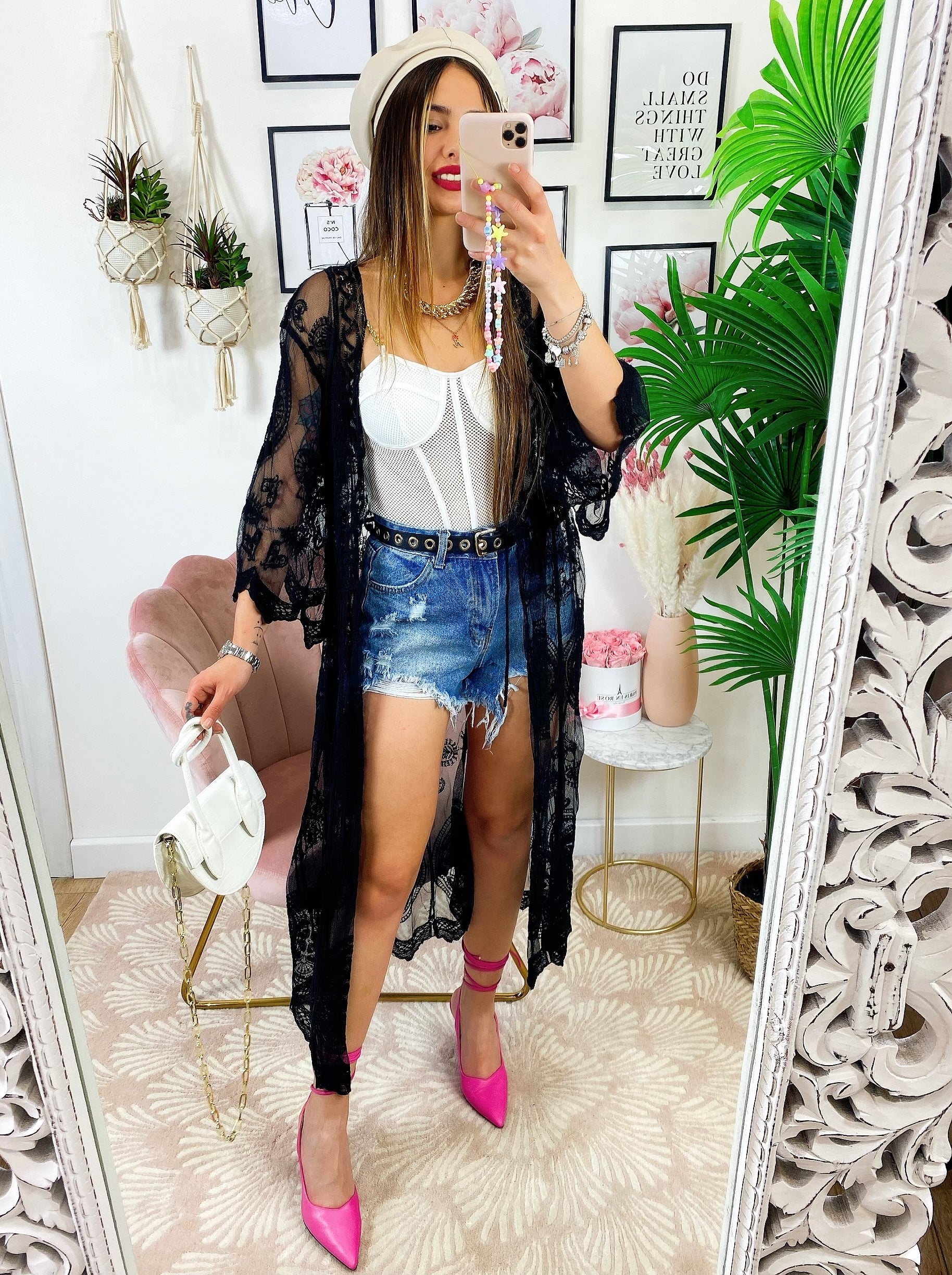 Pareo/kimono lungo in pizzo