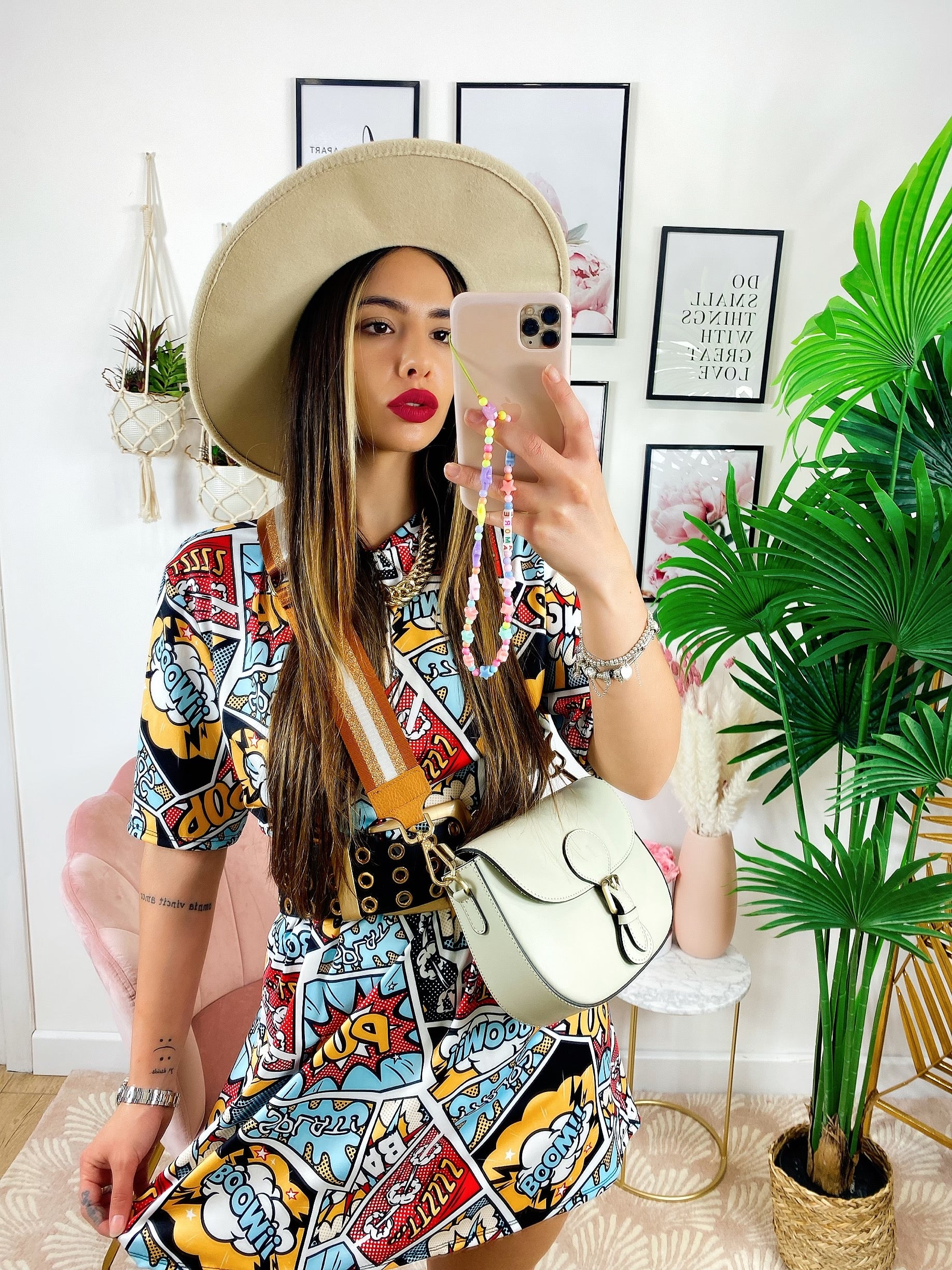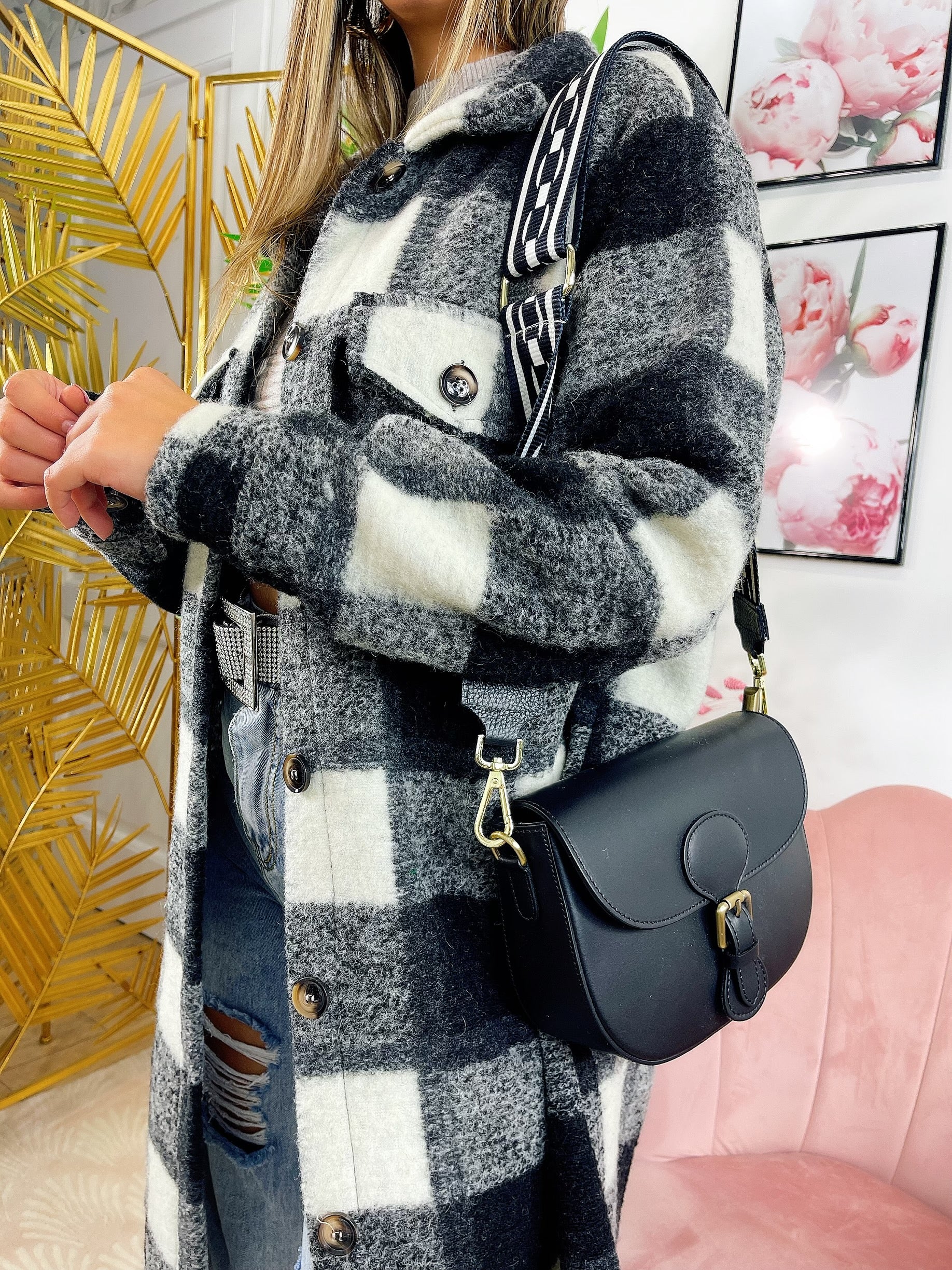 Pochette in ver a pelle morbidissima con tracolla tono su tono delle borsa e un’altra sostitutiva a fantasia