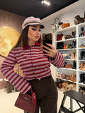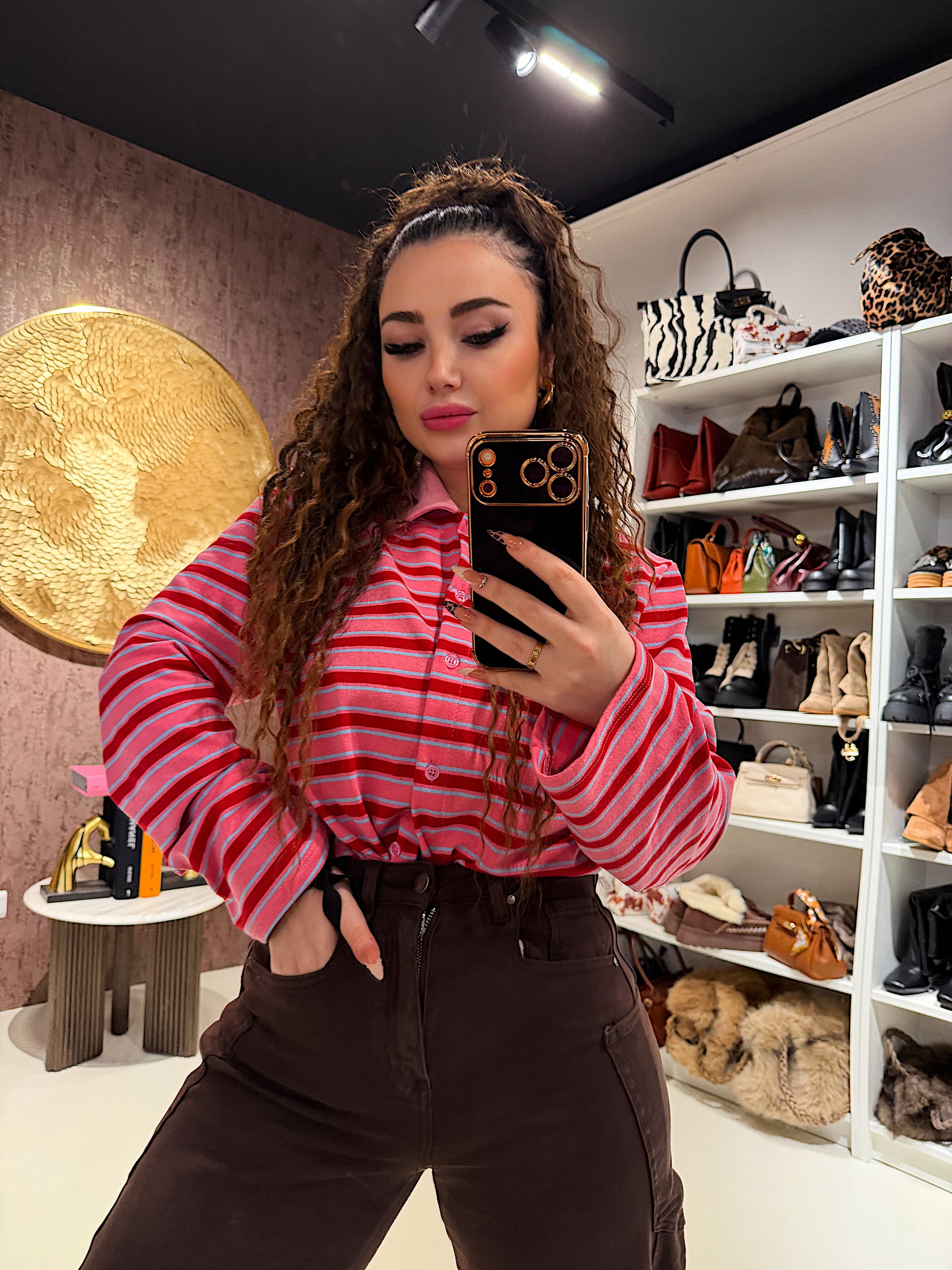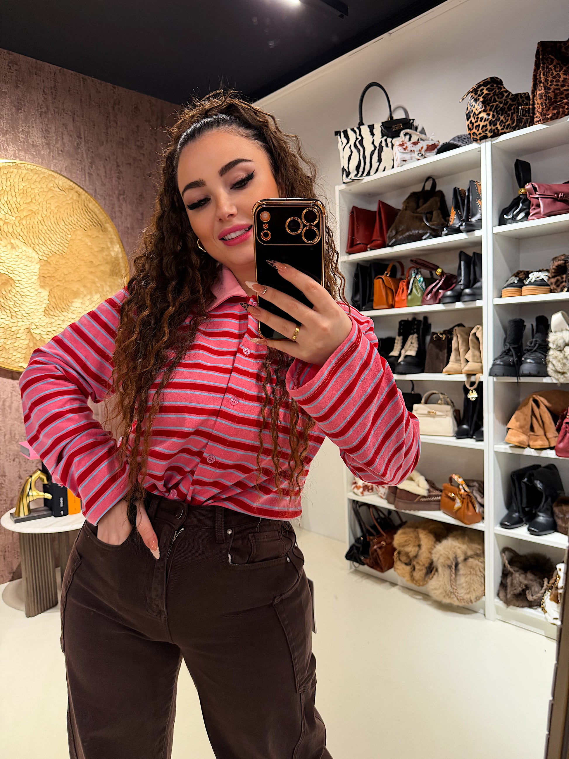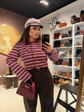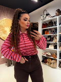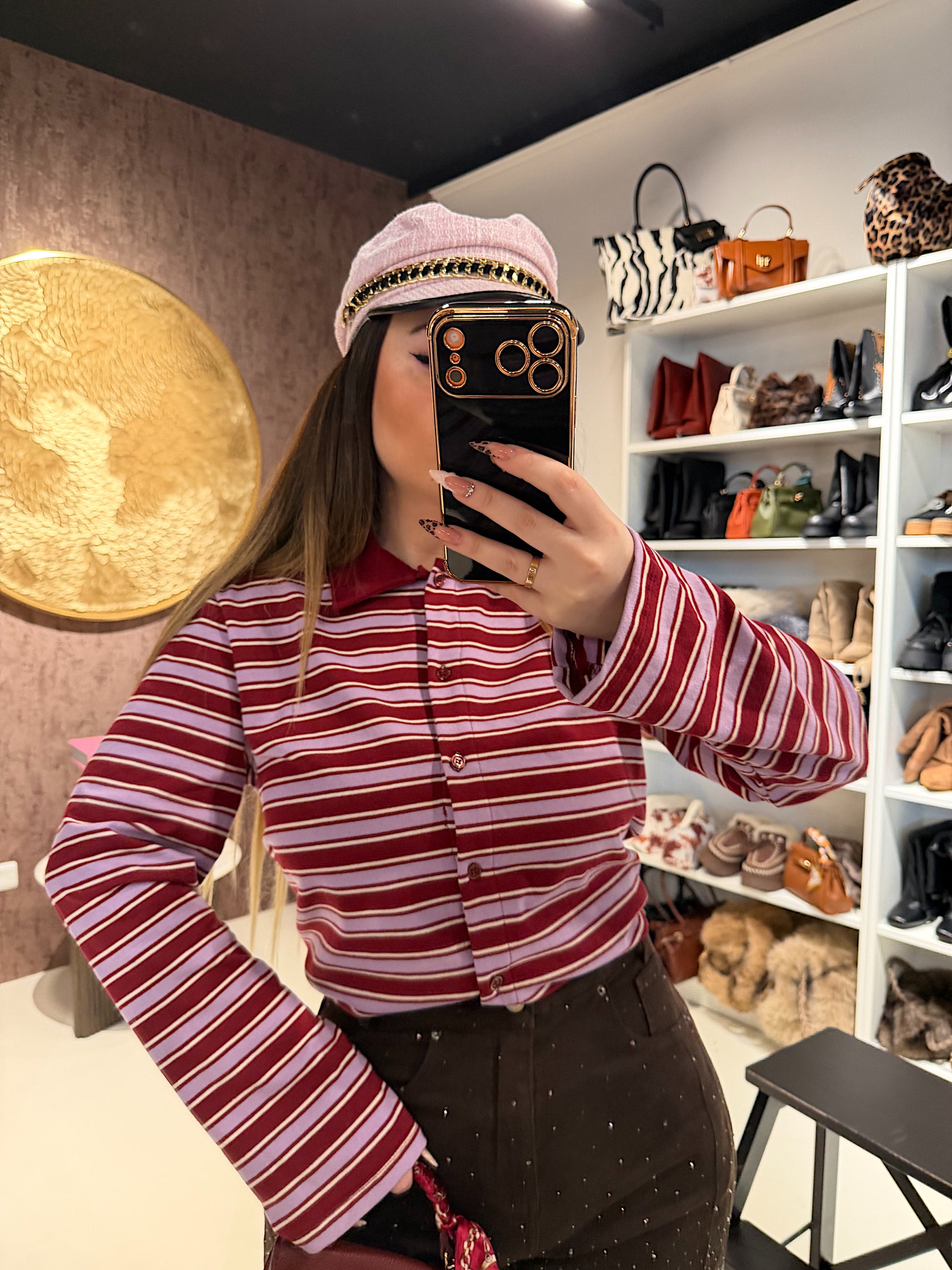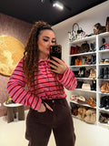 Polo a righe dal fascino retrò in tonalità. Realizzata in morbido cotone elasticizzato, presenta colletto e polsini a contrasto e una vestibilità comoda e femminile. Perfetta per un look casual chic dal tocco dolce e raffinato, da abbinare a jeans o minigonne per un outfit accattivante e moderno.