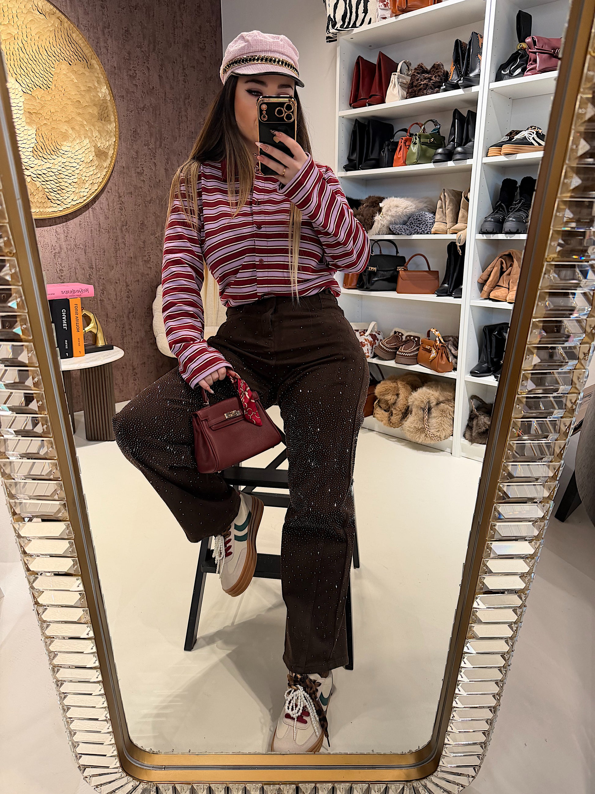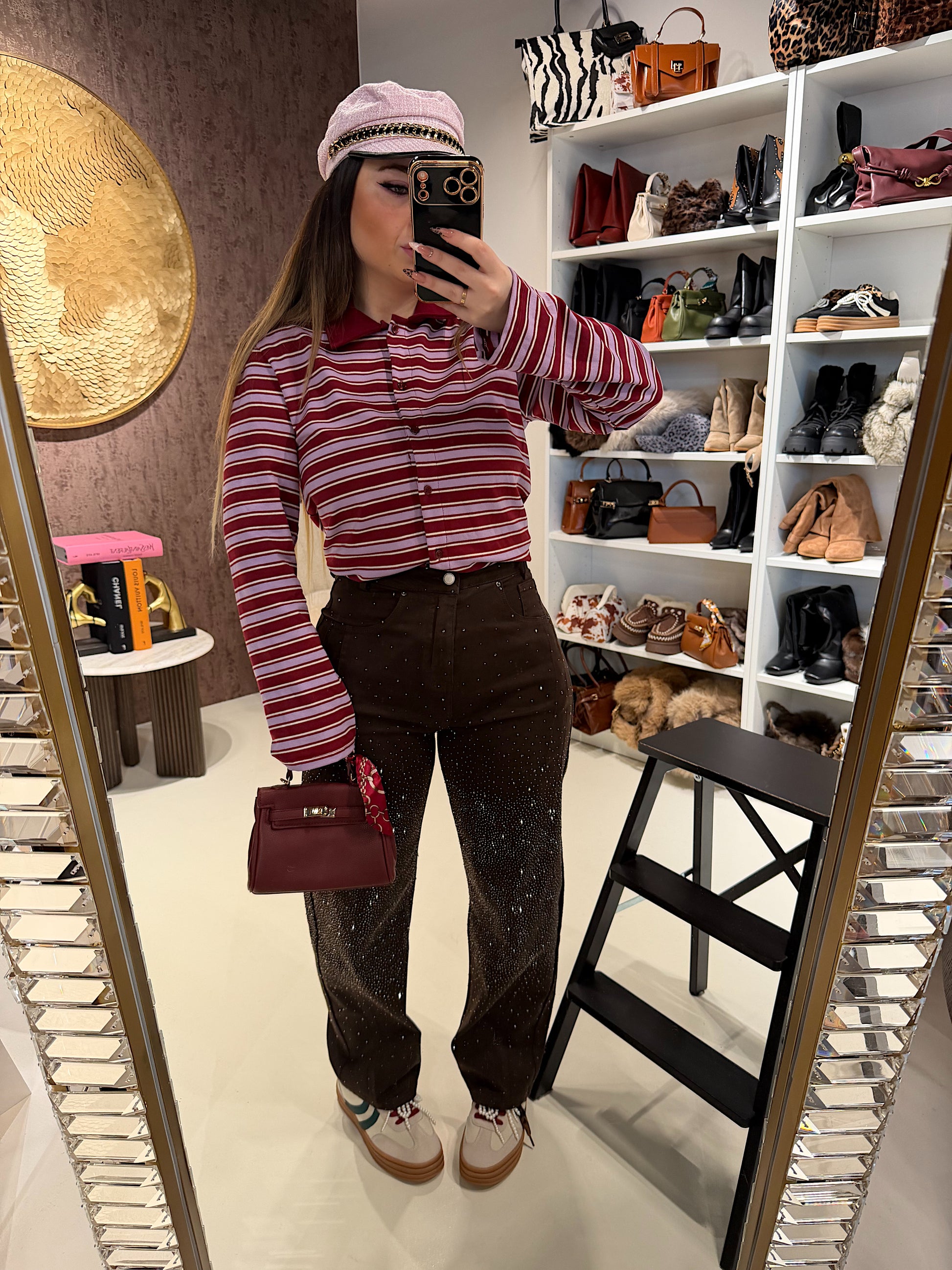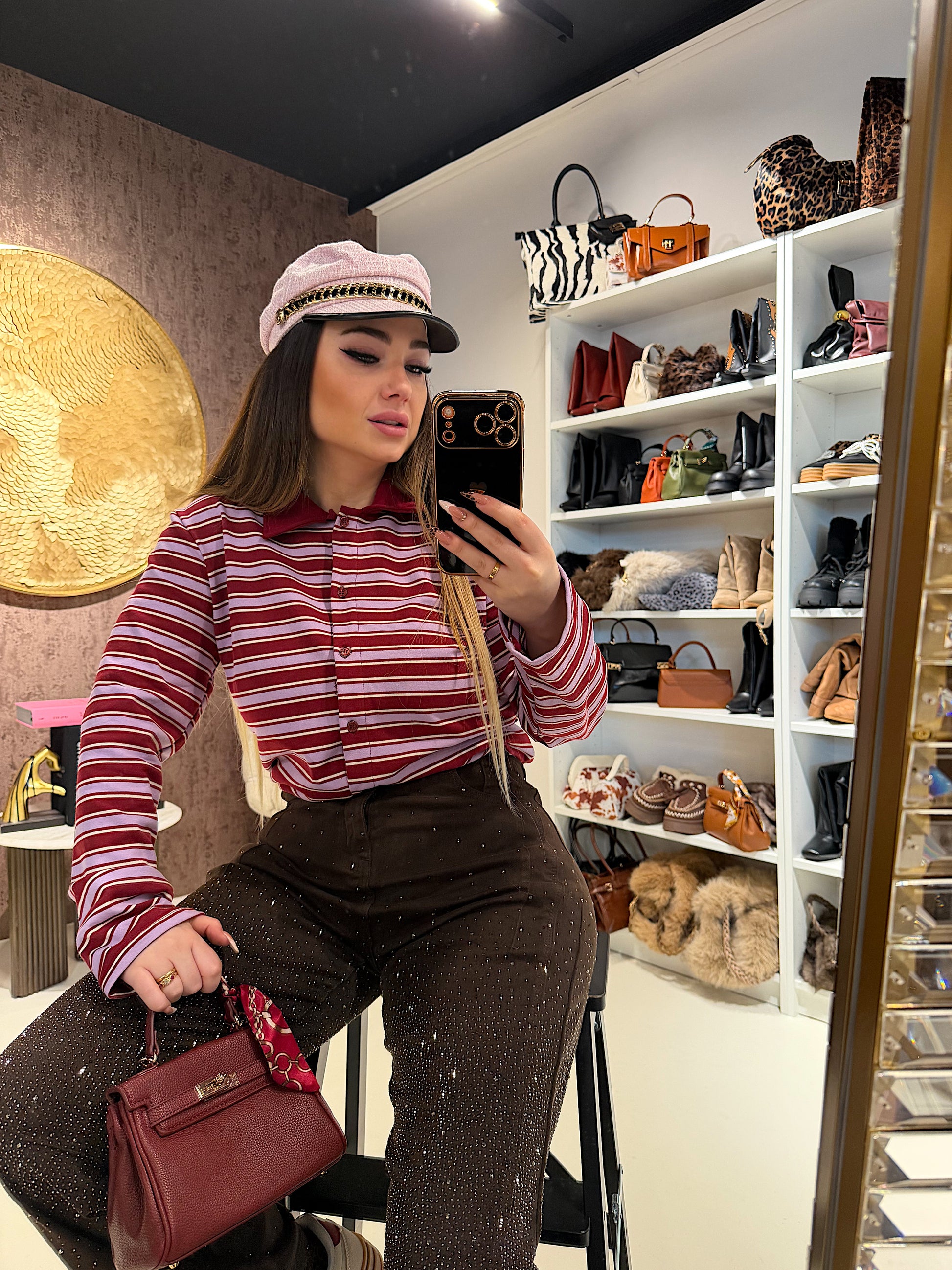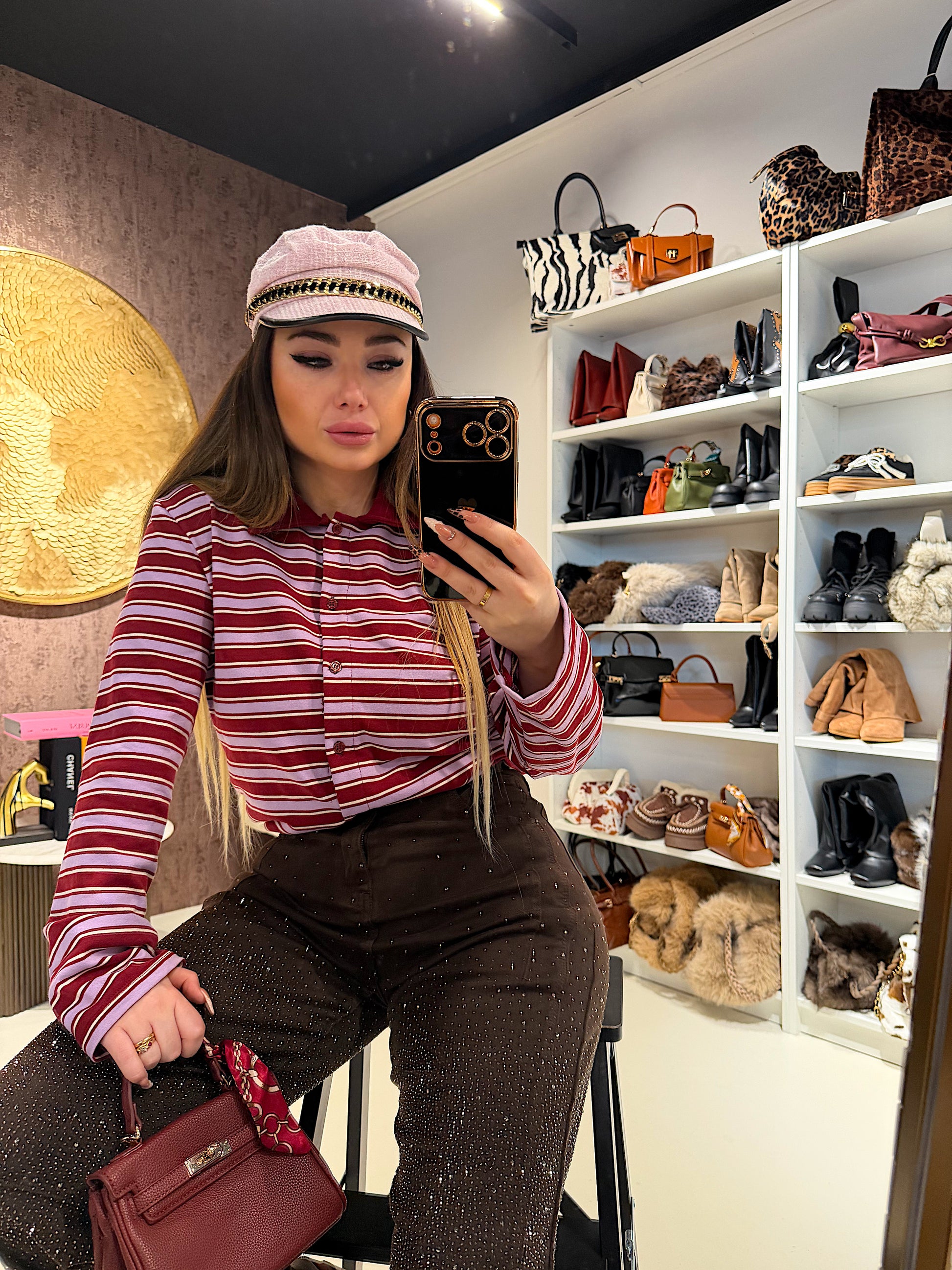 Polo a righe dal fascino retrò in tonalità. Realizzata in morbido cotone elasticizzato, presenta colletto e polsini a contrasto e una vestibilità comoda e femminile. Perfetta per un look casual chic dal tocco dolce e raffinato, da abbinare a jeans o minigonne per un outfit accattivante e moderno.