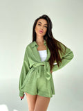 Completo due pezzi venduti singolarmente composto da camicia e short in tessuto leggero estivo. Elasticizzato e comodo.