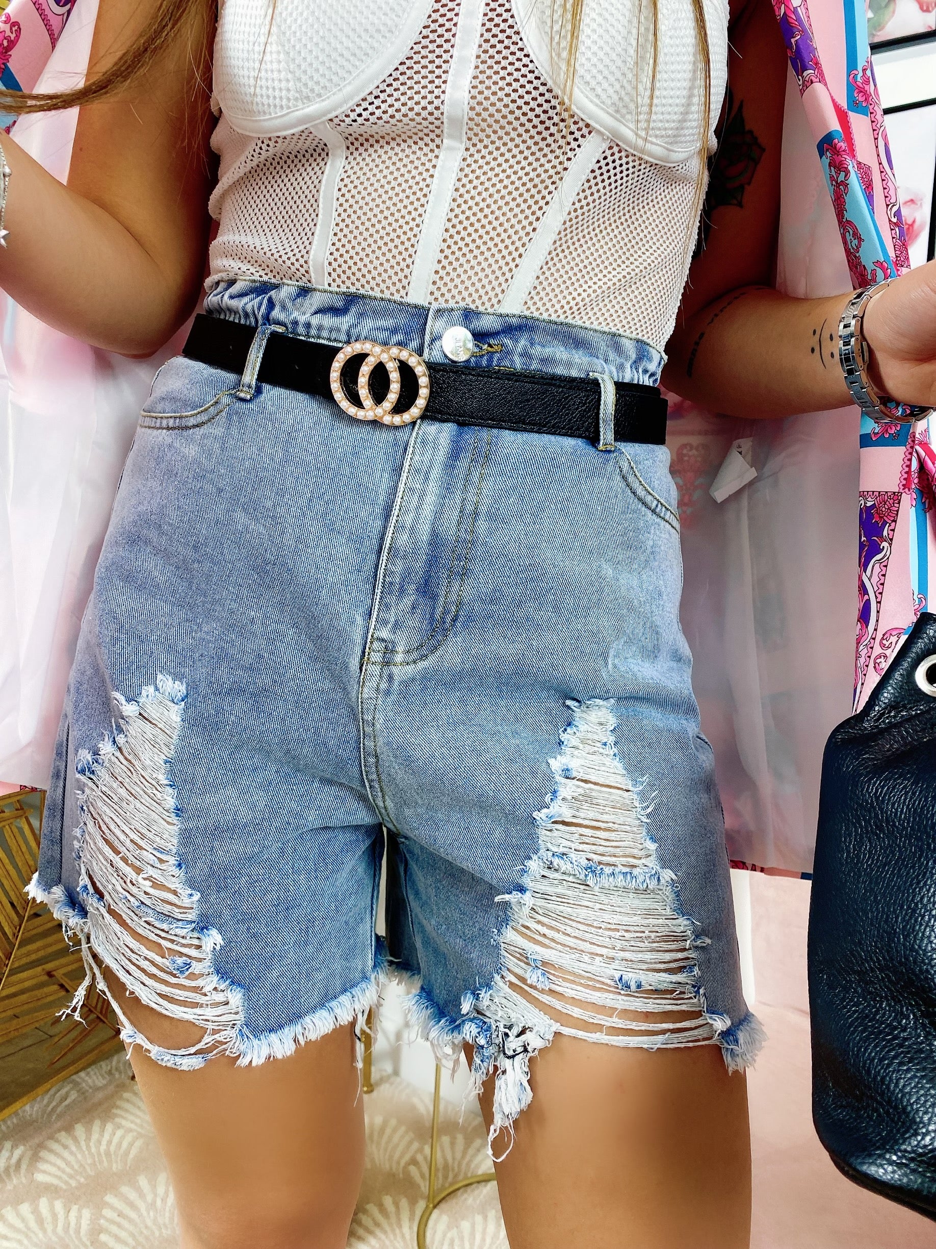 Short con spacchi anteriori sfrangiato Elasticizzato in vita.