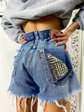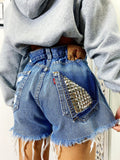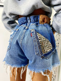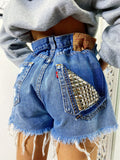 Short Vintage Levi’s alta qualità con strappi e borchie