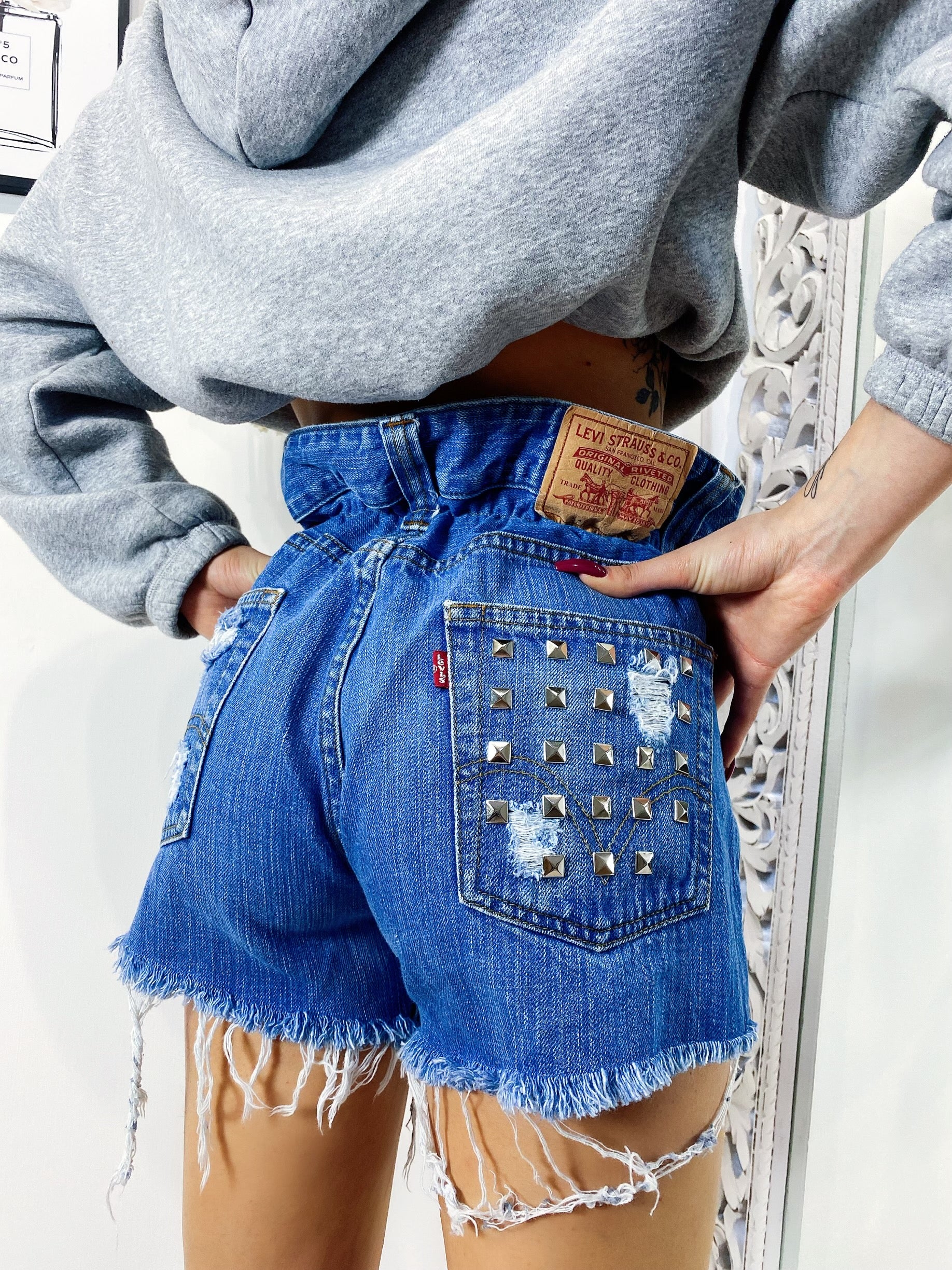 Short Levi’s Vintage bagno scuro con borchie - R.a. Boutique