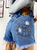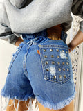 Short Vintage Levi’s alta qualità con strappi e con borchie