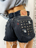 Short Vintage Levi’s alta qualità con strappi. Jeans vintage lavorati a mano Considerati pezzi unici poichè interamente Personalizzati. Lievi differenze rispetto alla foto ne denotano l'unicità e la sua completa lavorazione handmade.