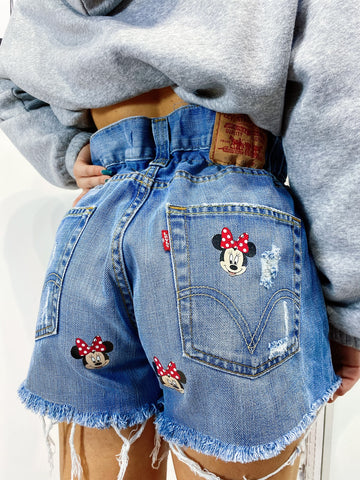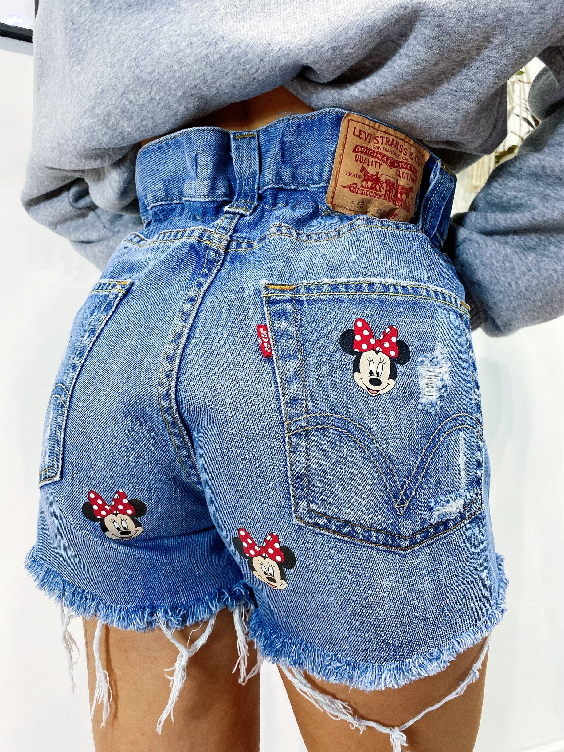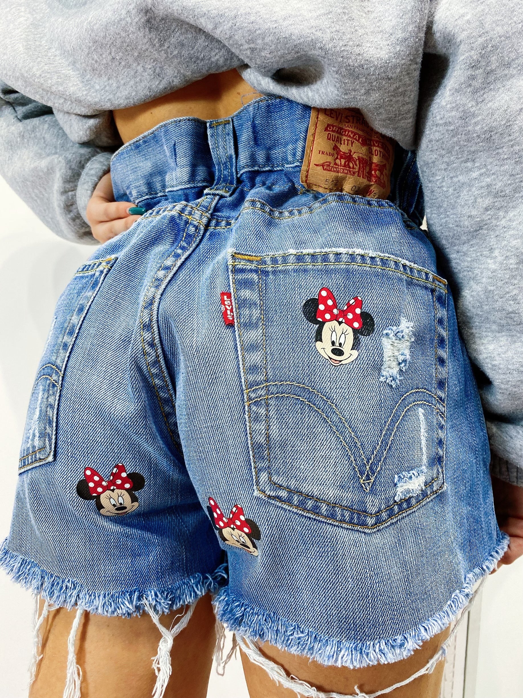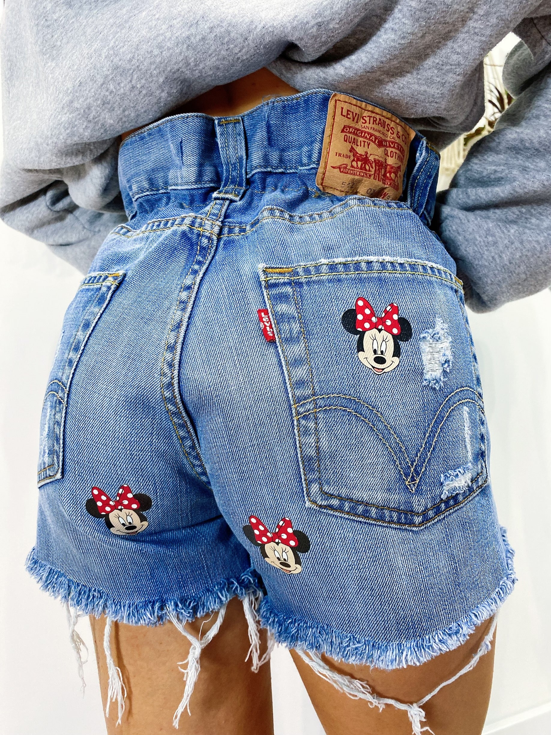 Short Vintage Levi’s alta qualità senza strappi con stampa topolina.