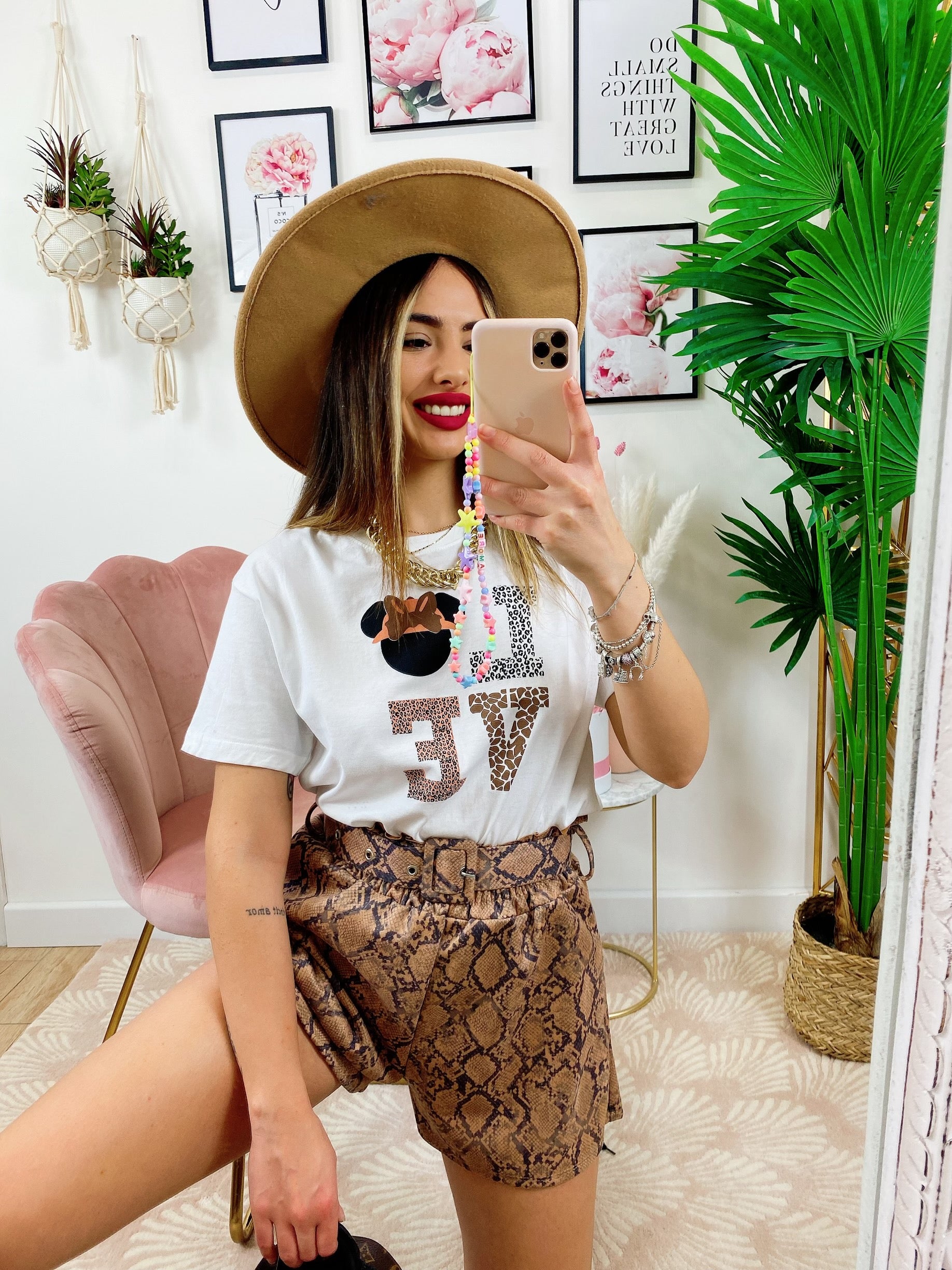 Short pitonato con elastico in vita e cintura .Taglia unica ma adatto a taglie piccole