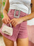 Short glitterato con cintura gioiello, leggermente elasticizzato, vestibilità piccola.