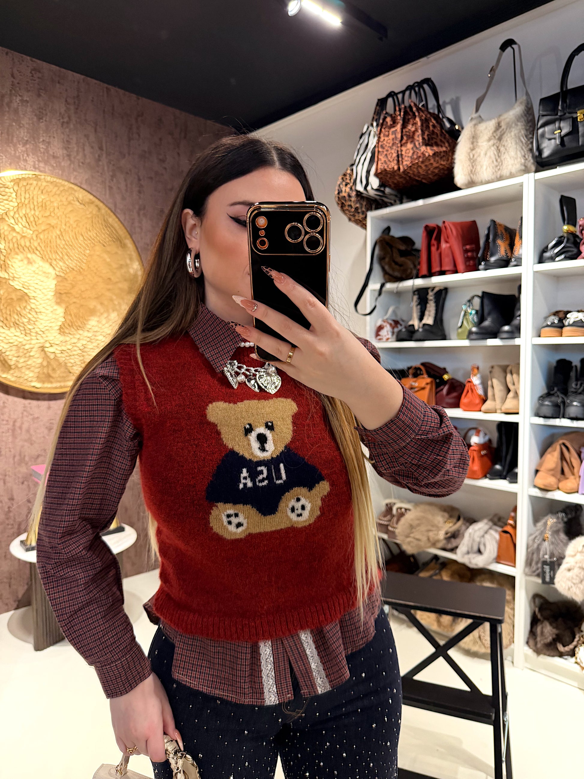 Lo smanicato Teddy è un capo di abbigliamento alla moda che presenta una stampa unica. Realizzato con materiali di qualità, è perfetto per completare il tuo look e mostrare il tuo stile. Aggiungi un tocco di originalità al tuo outfit con lo smanicato Teddy.