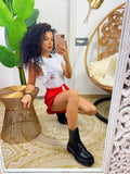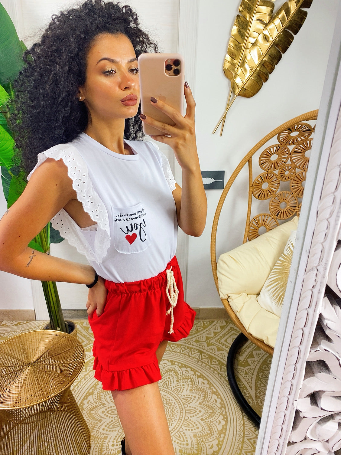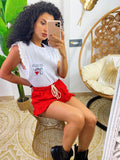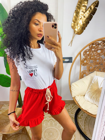 T-shirt con rouches e taschino con scritte.