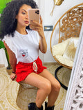 T-shirt con rouches e taschino