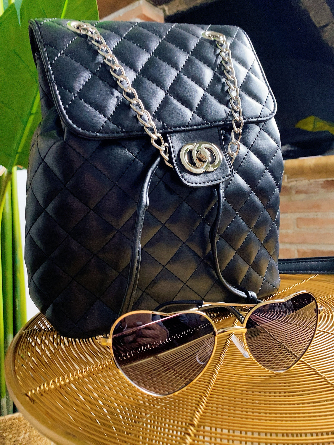 Zaino in eco-pelle con chiusura centrale. Può essere portato sia come borsa che come zaino.
