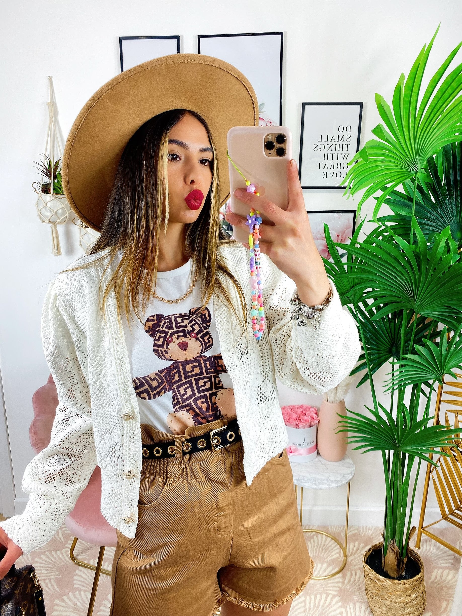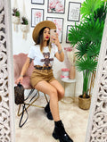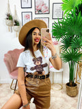 T-shirt crop con stampa teddy.