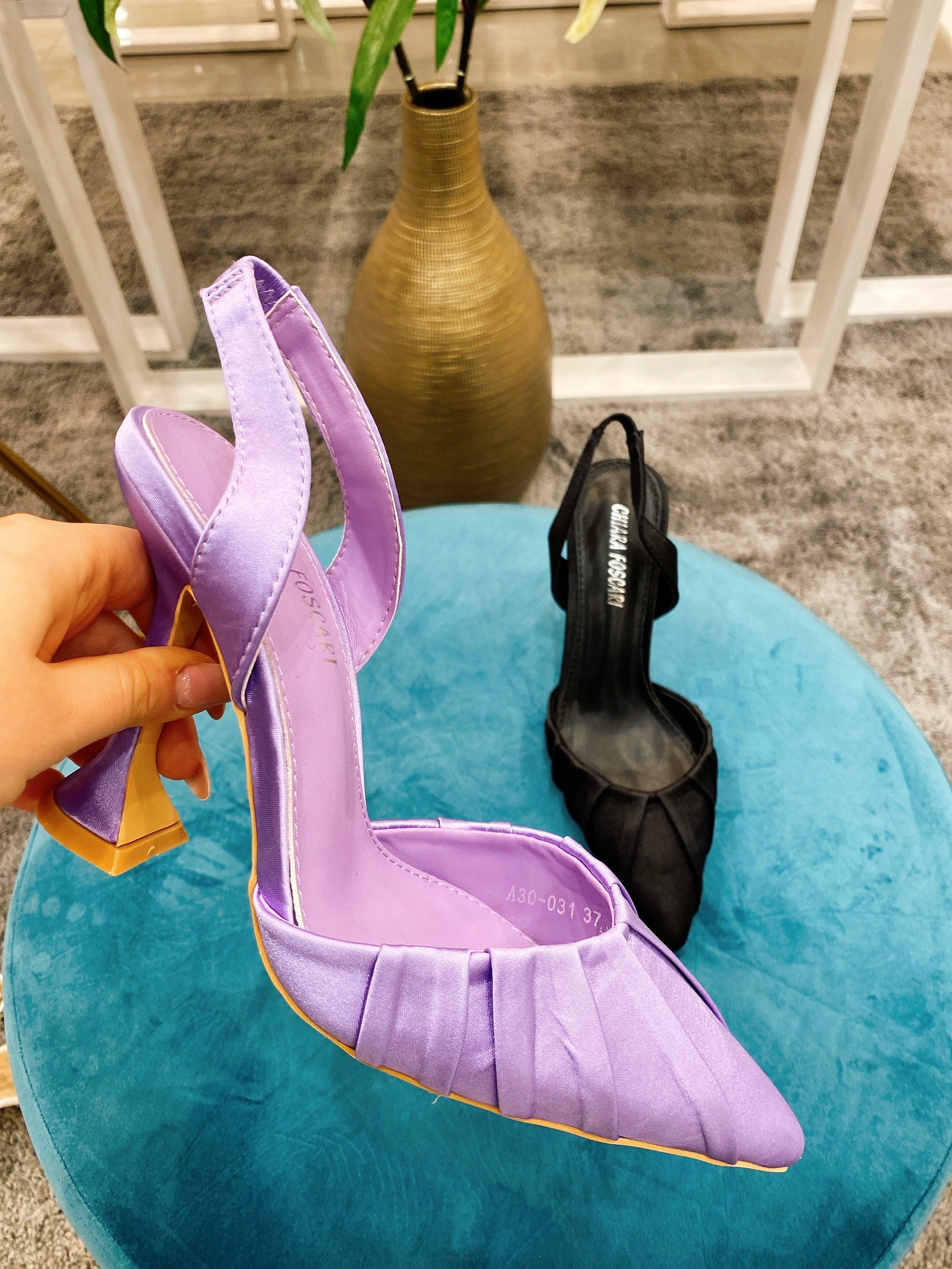 Tacco lilla con arricciature