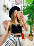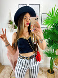 Top corto elasticizzato e raso con coppe imbottite e ganci regolabili dietro. Adatte a un busto piccolo e taglie di seno non grandi.
