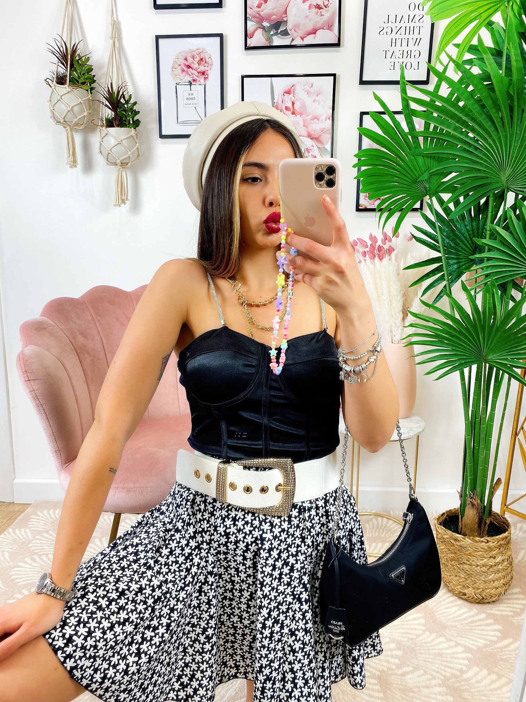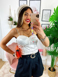Top con catena in strass Compreso di coppe senza ferretto. Adatto a taglie di seno non grandi.