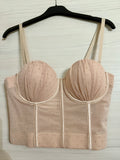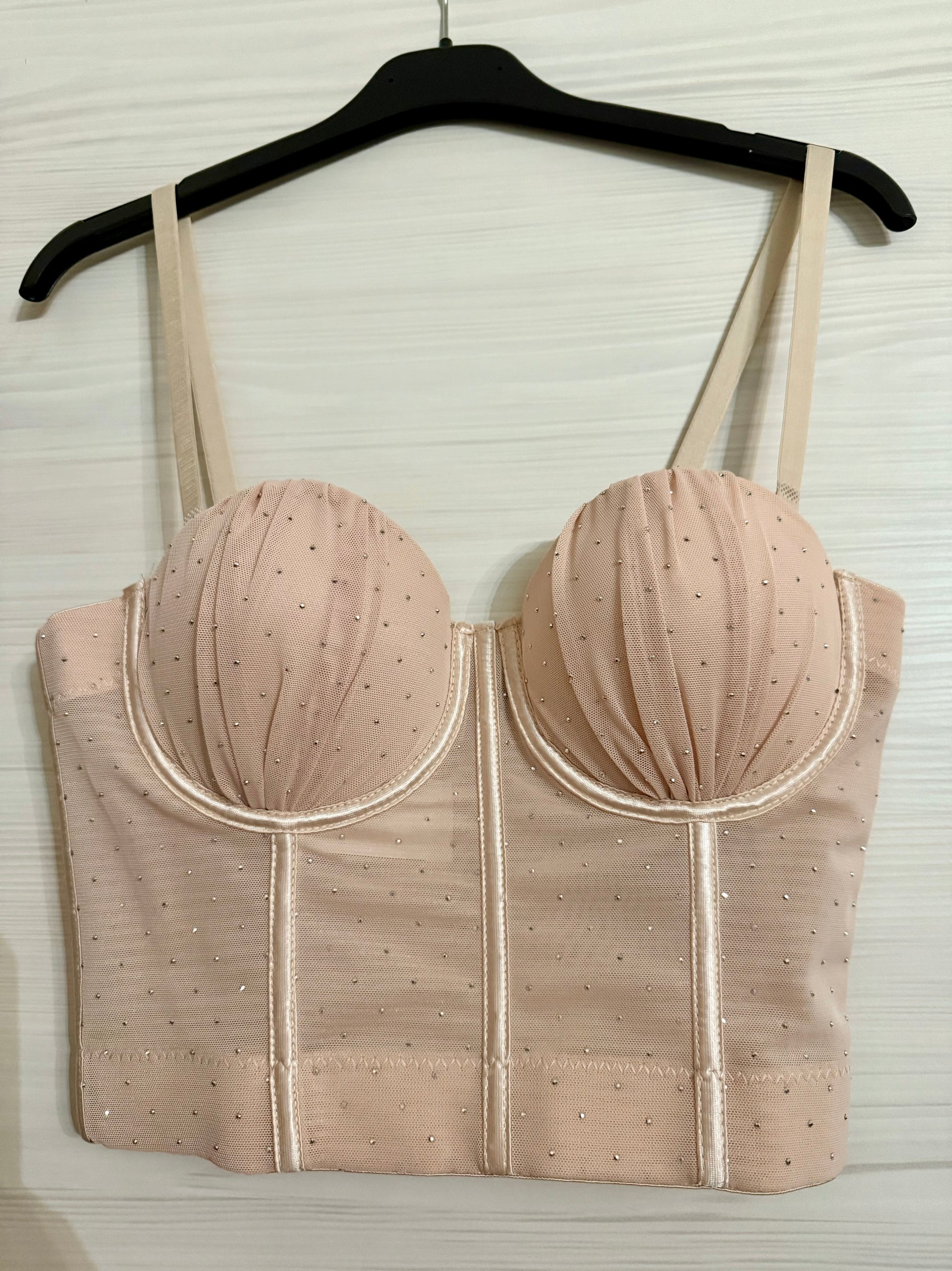 Top corsetto cipria con strass