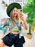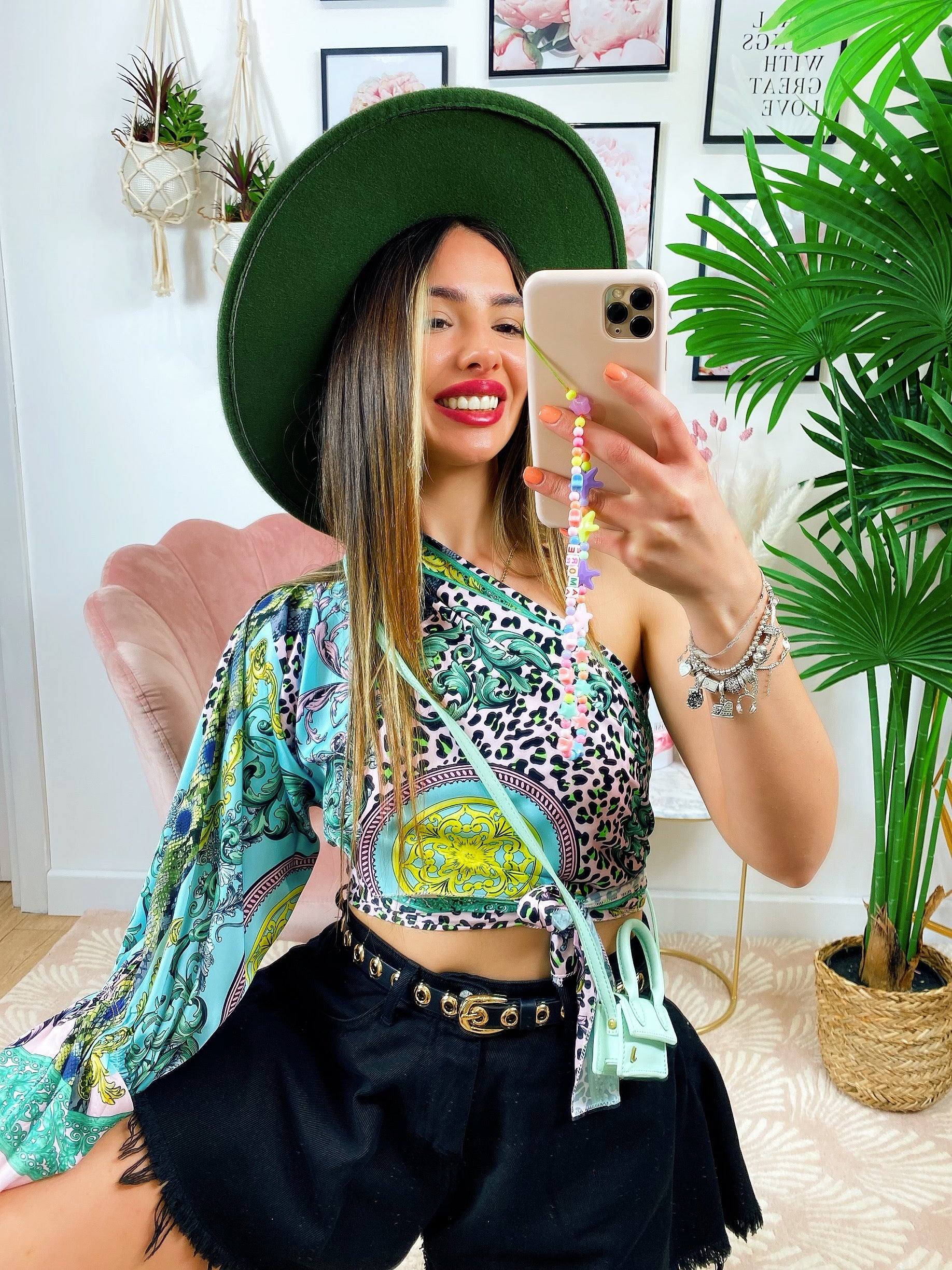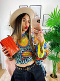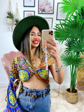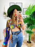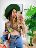Top Etnico monospalla In tessuto simil Raso. Si può intrecciare in tantissimi modi