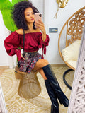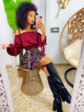 top in raso con scollo a barchetta e manica lunga semplice per i tuoi outfit ma essenziale abbinabile con una gonna come questa o un pantalone a vita alta.
