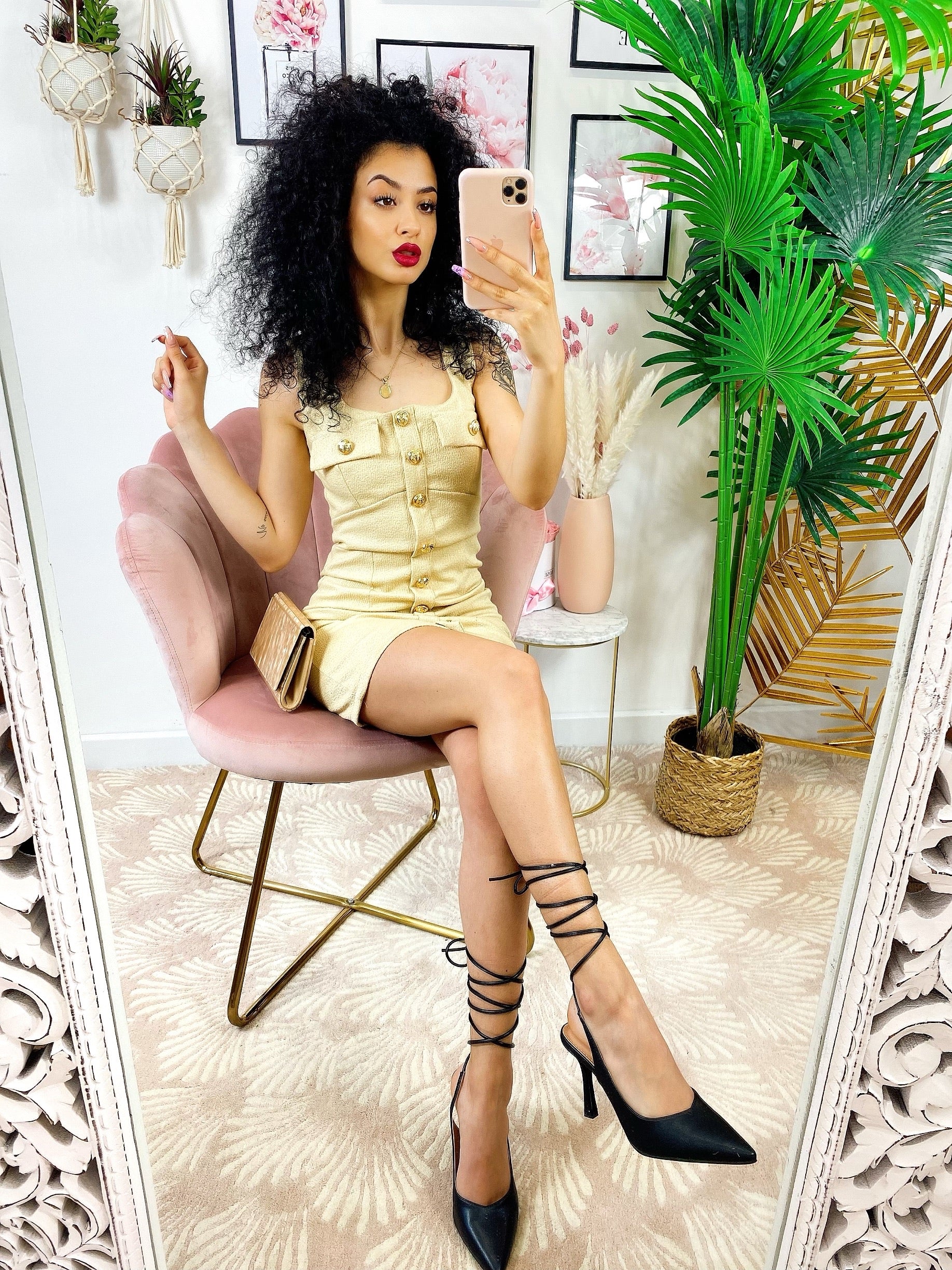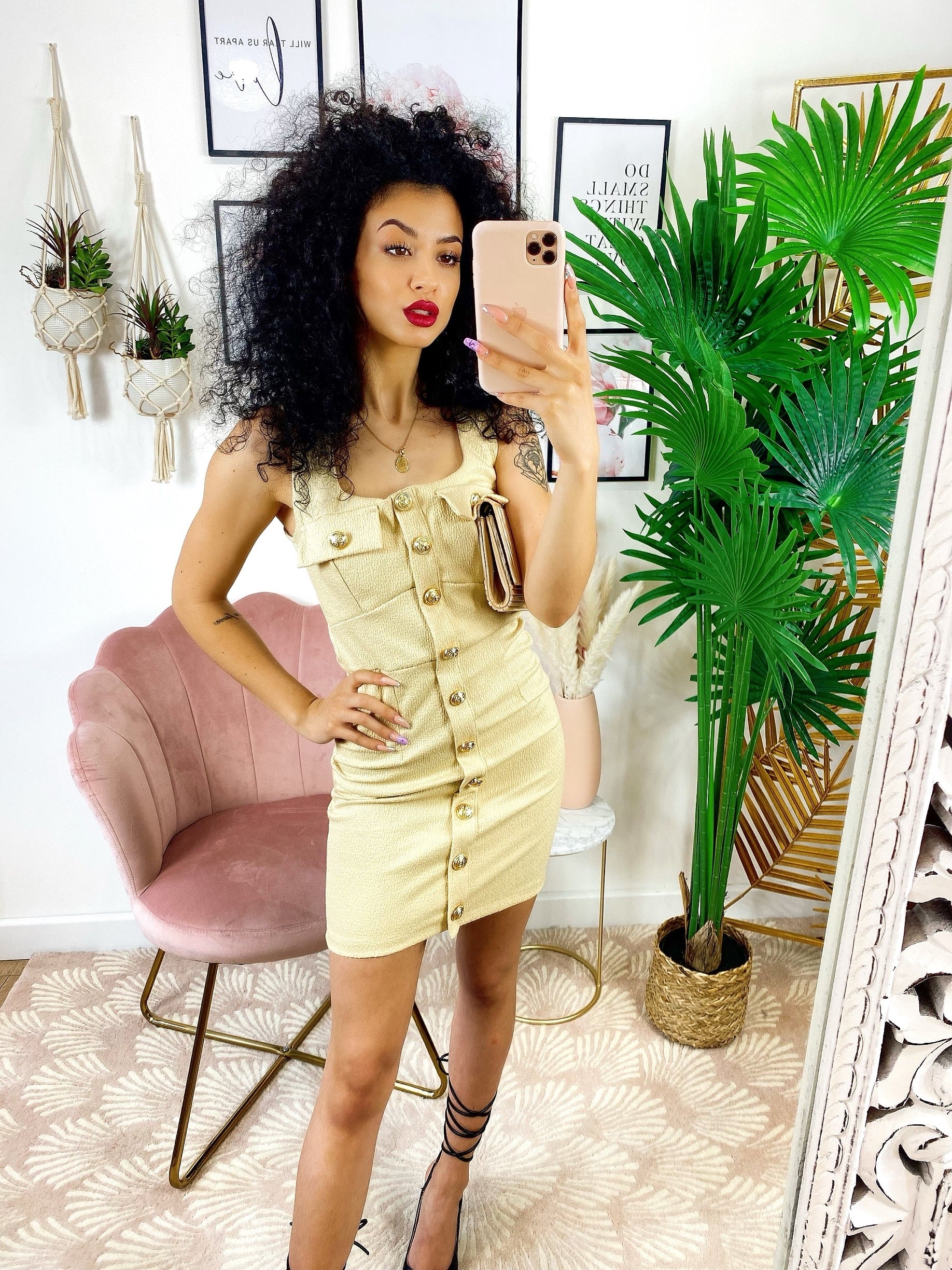 Tubino aderente con taschino e bottoni Gold beige