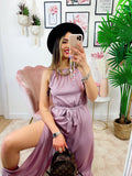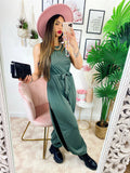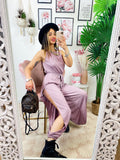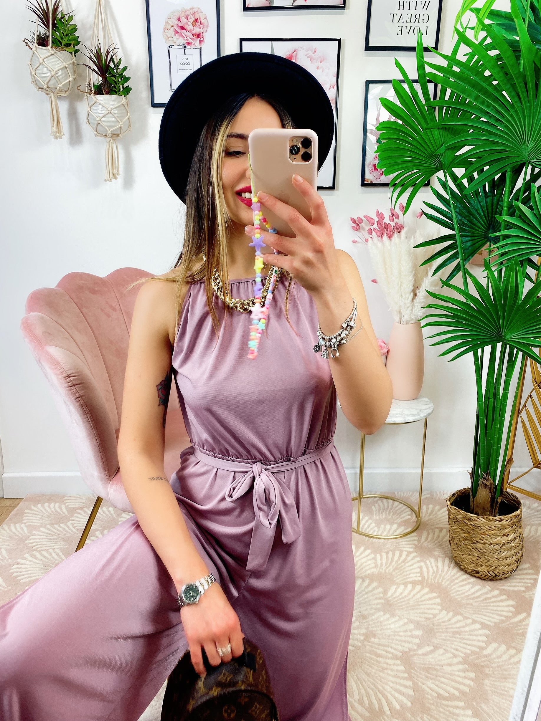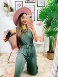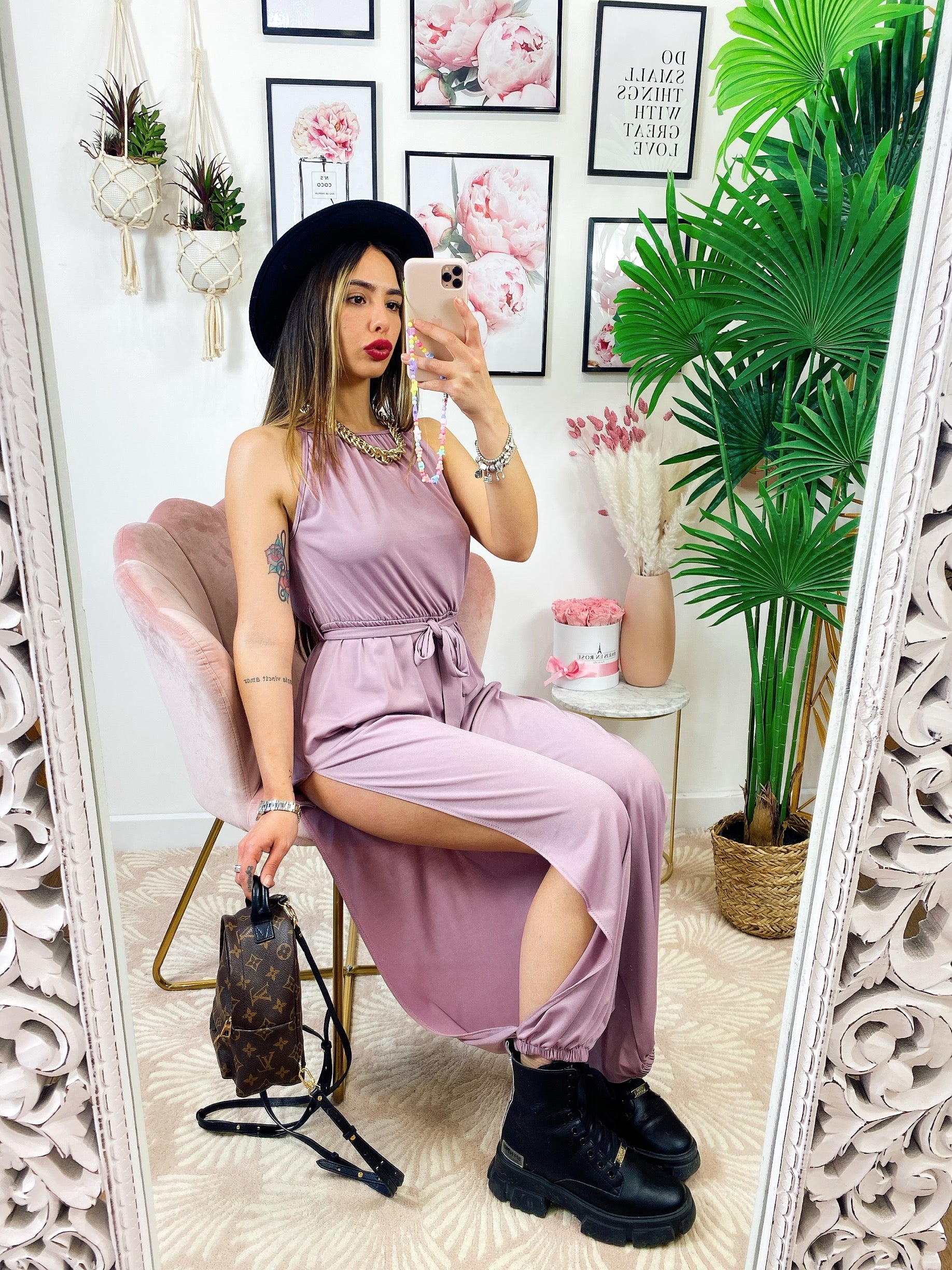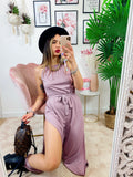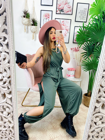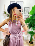 Tuta a bretellina con cintura e spacchi