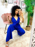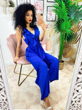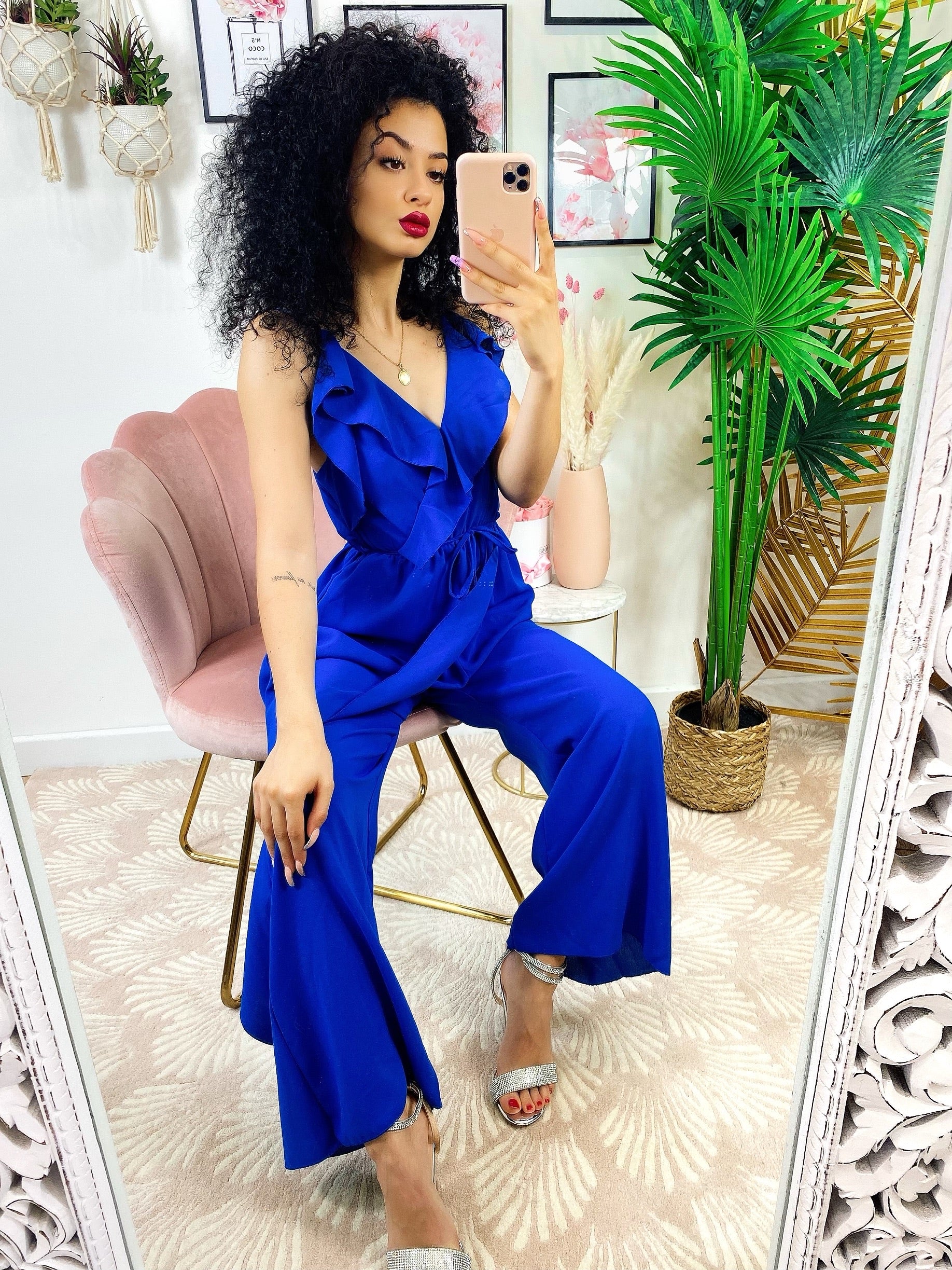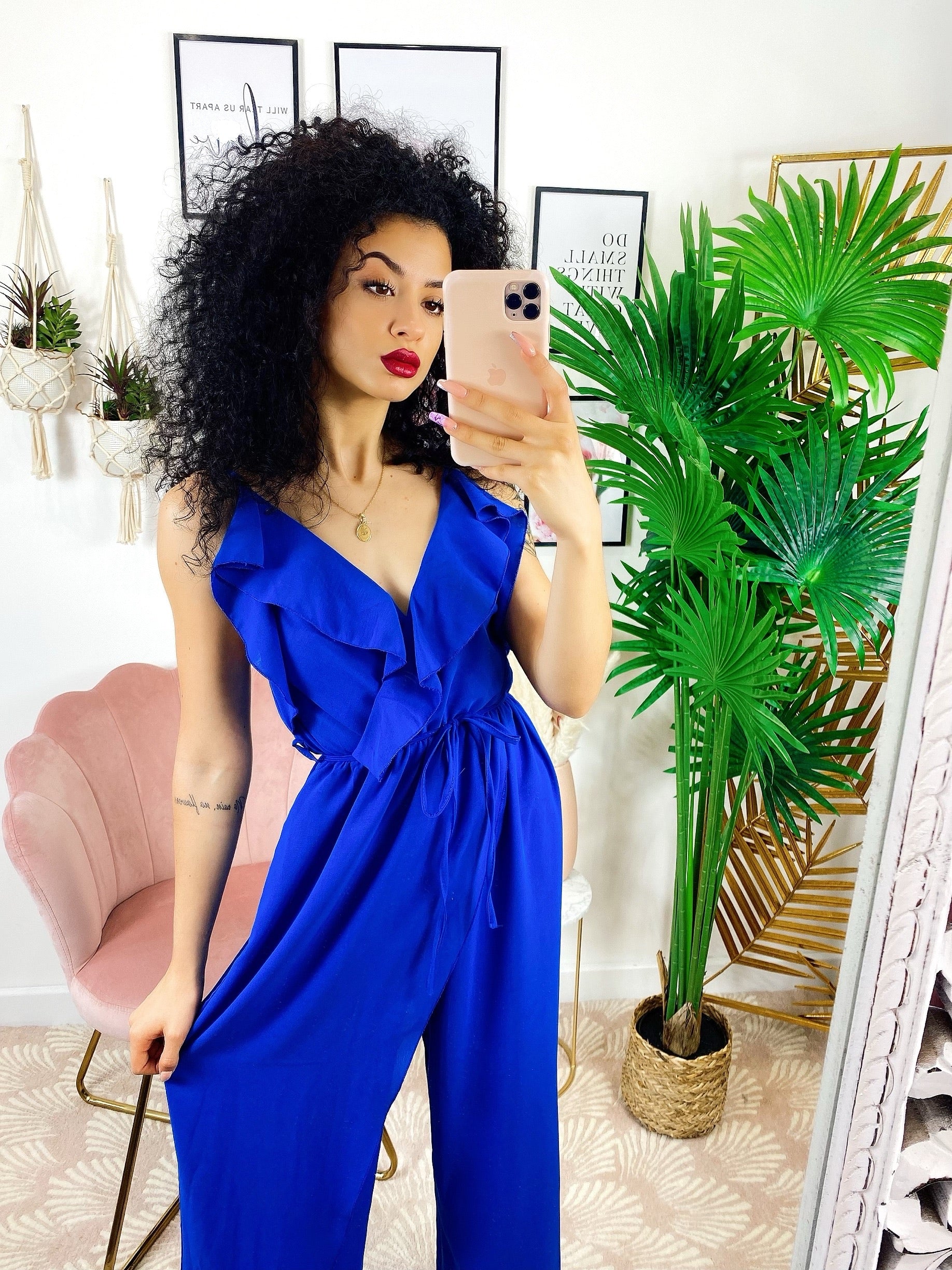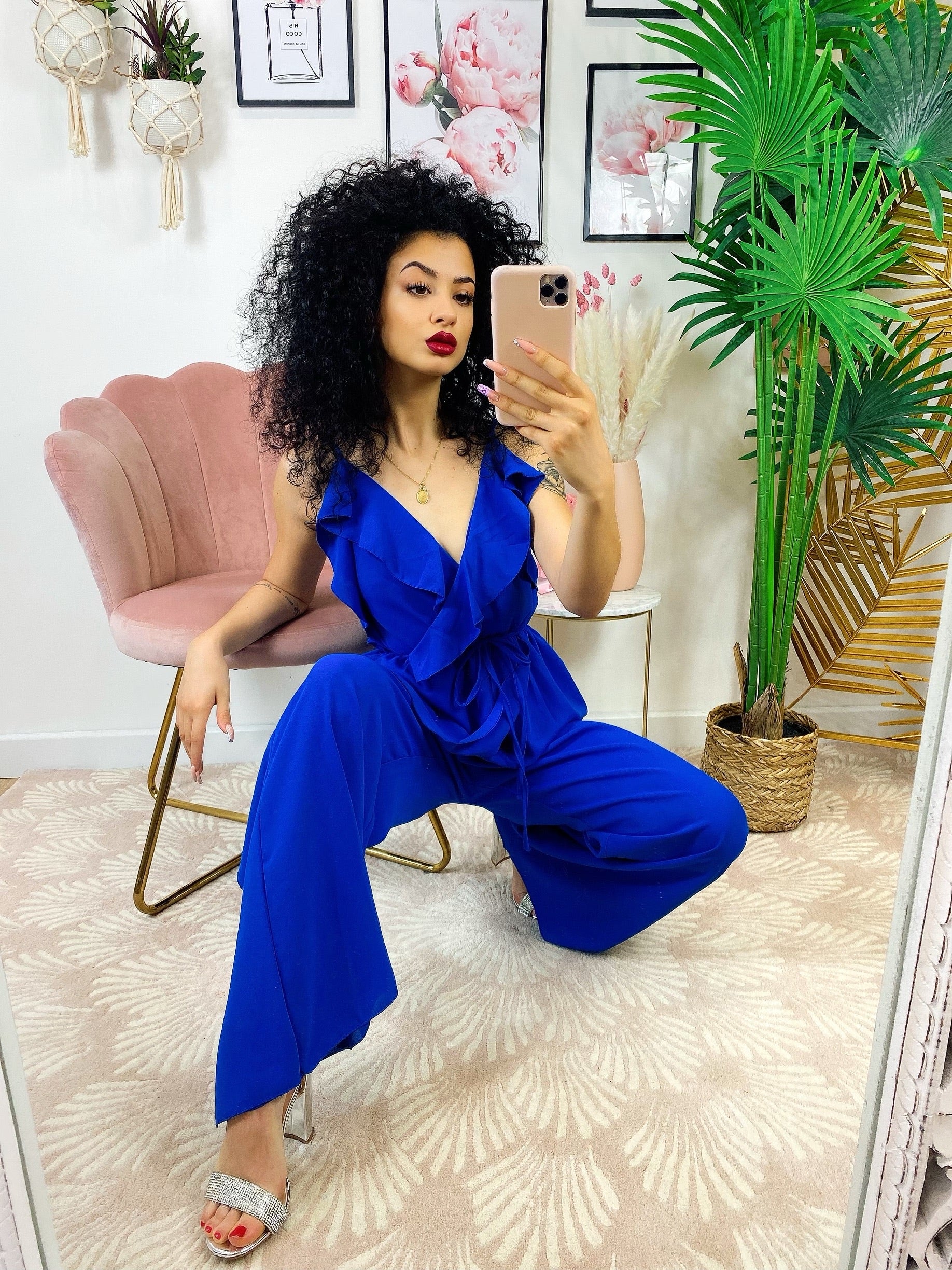 Tuta a tinta unita comoda, elasticizzata in vita con cinturona. Rouches in dettaglio sul davanti