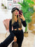 Tuta comfort, pantalone elasticizzato a zampa larga, Maglioncino con lacci al centro per stringerlo e tasche.