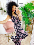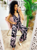 Tuta floreale base nera fiori Rosa