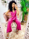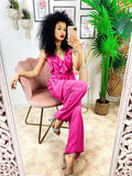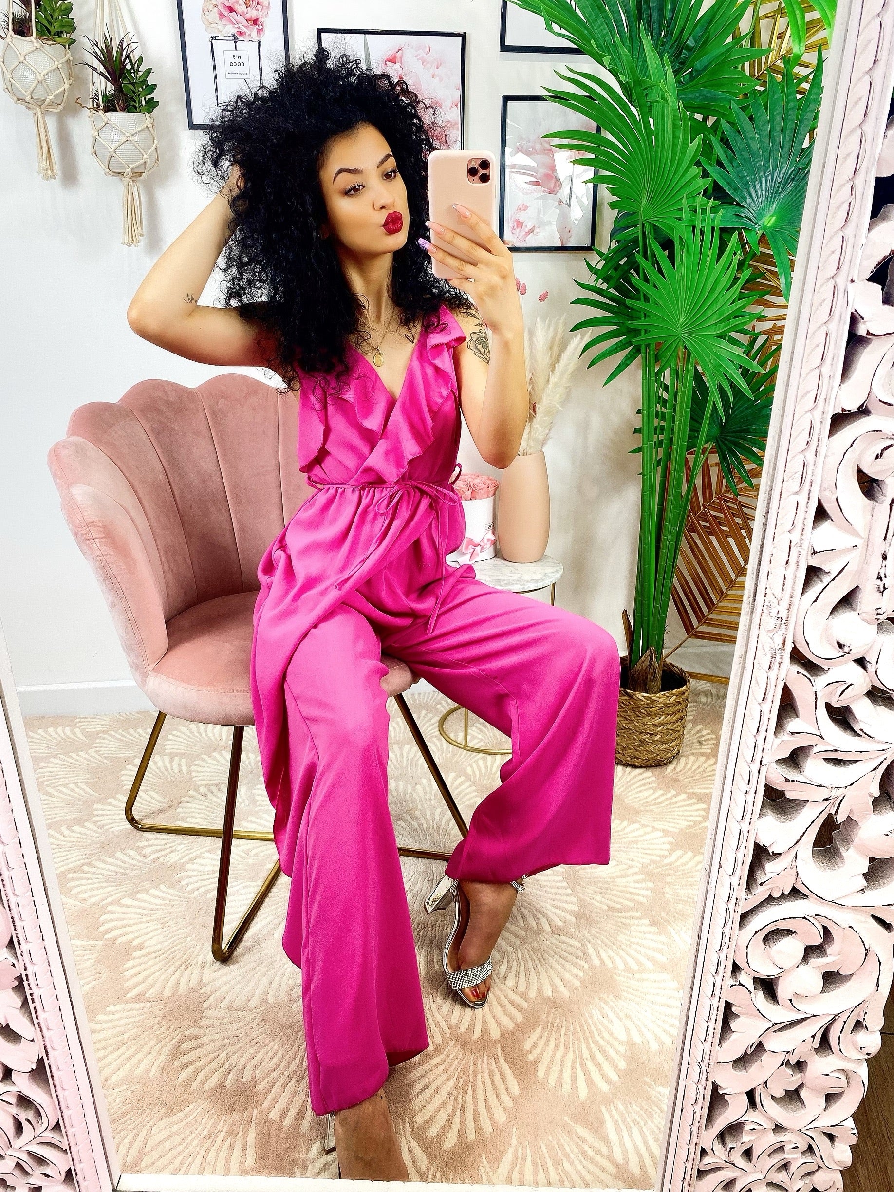 Tuta a tinta unita comoda, elasticizzata in vita con cinturona. Rouches in dettaglio sul davanti