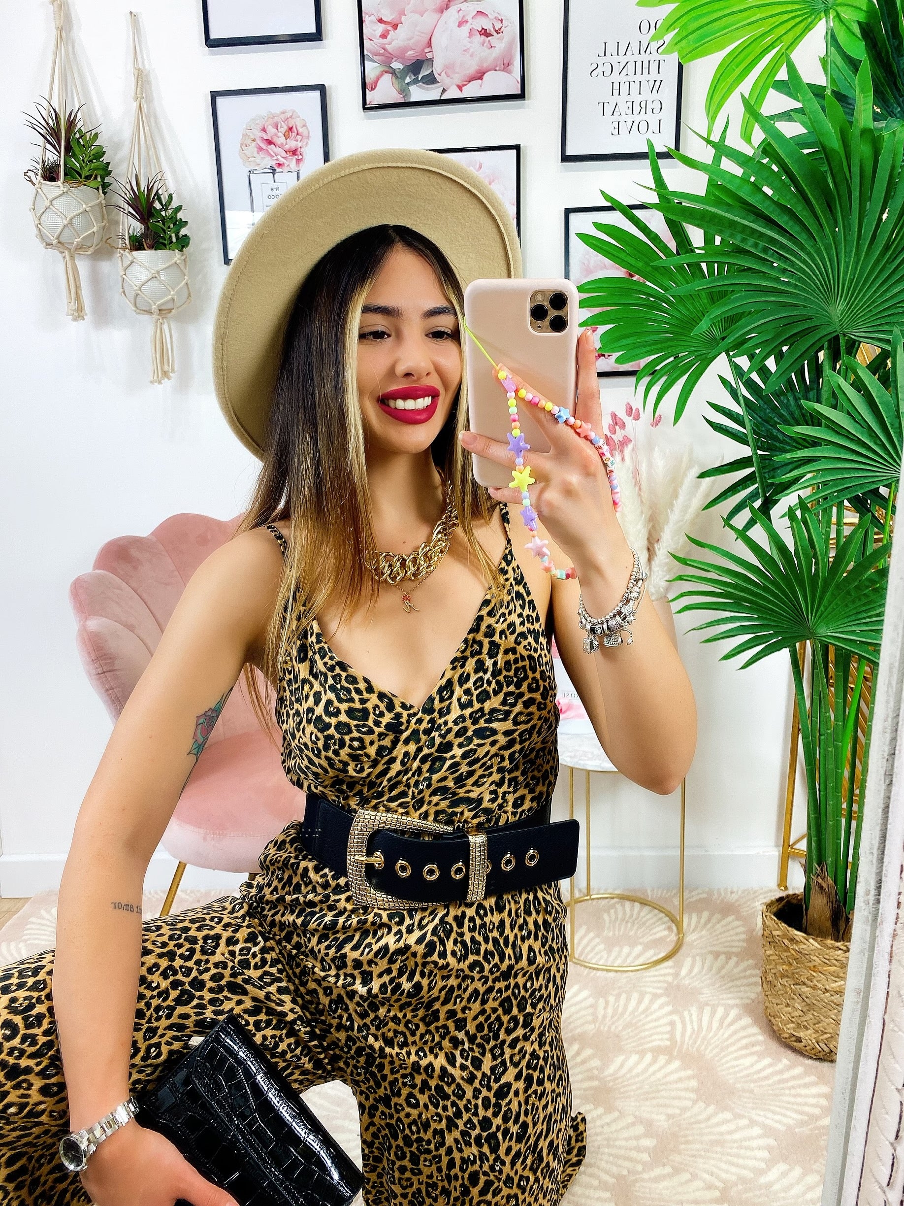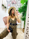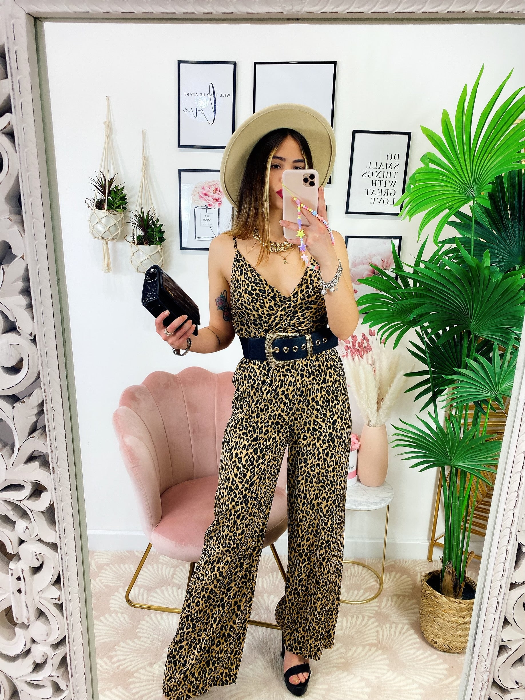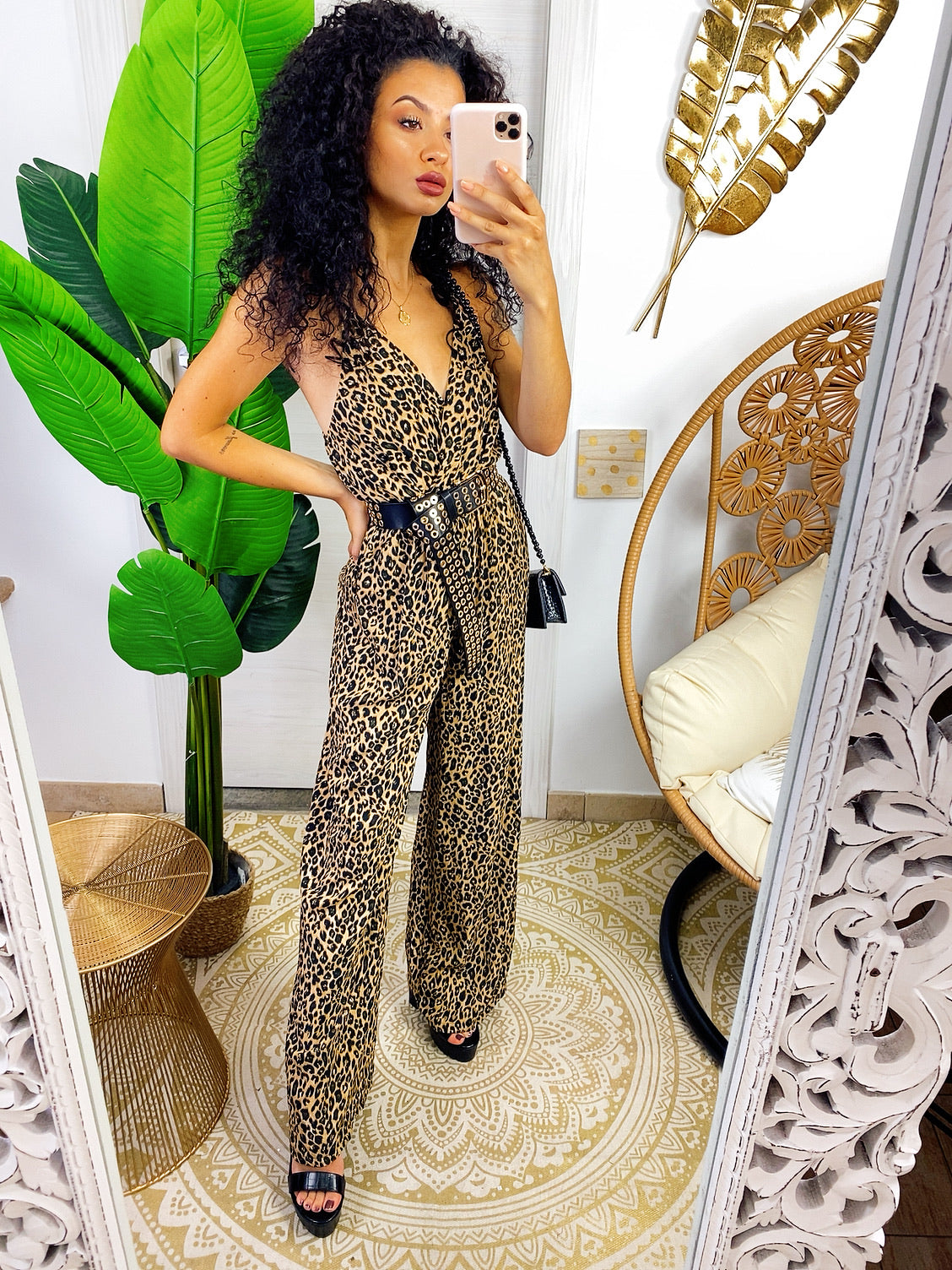 Particolarissima tuta intera con elastico in vita in tessuto leggero a fantasia maculata. Taglia unica.