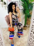 Tuta intera con stampa nera fiori fuxia