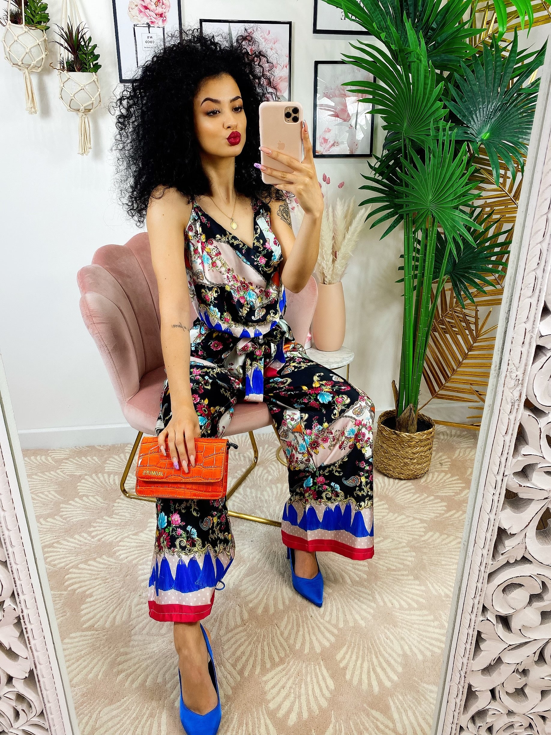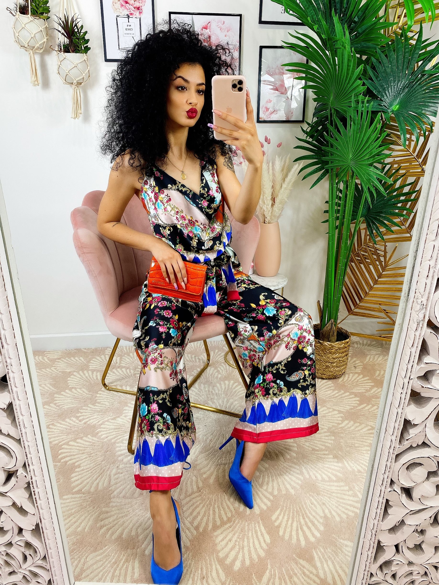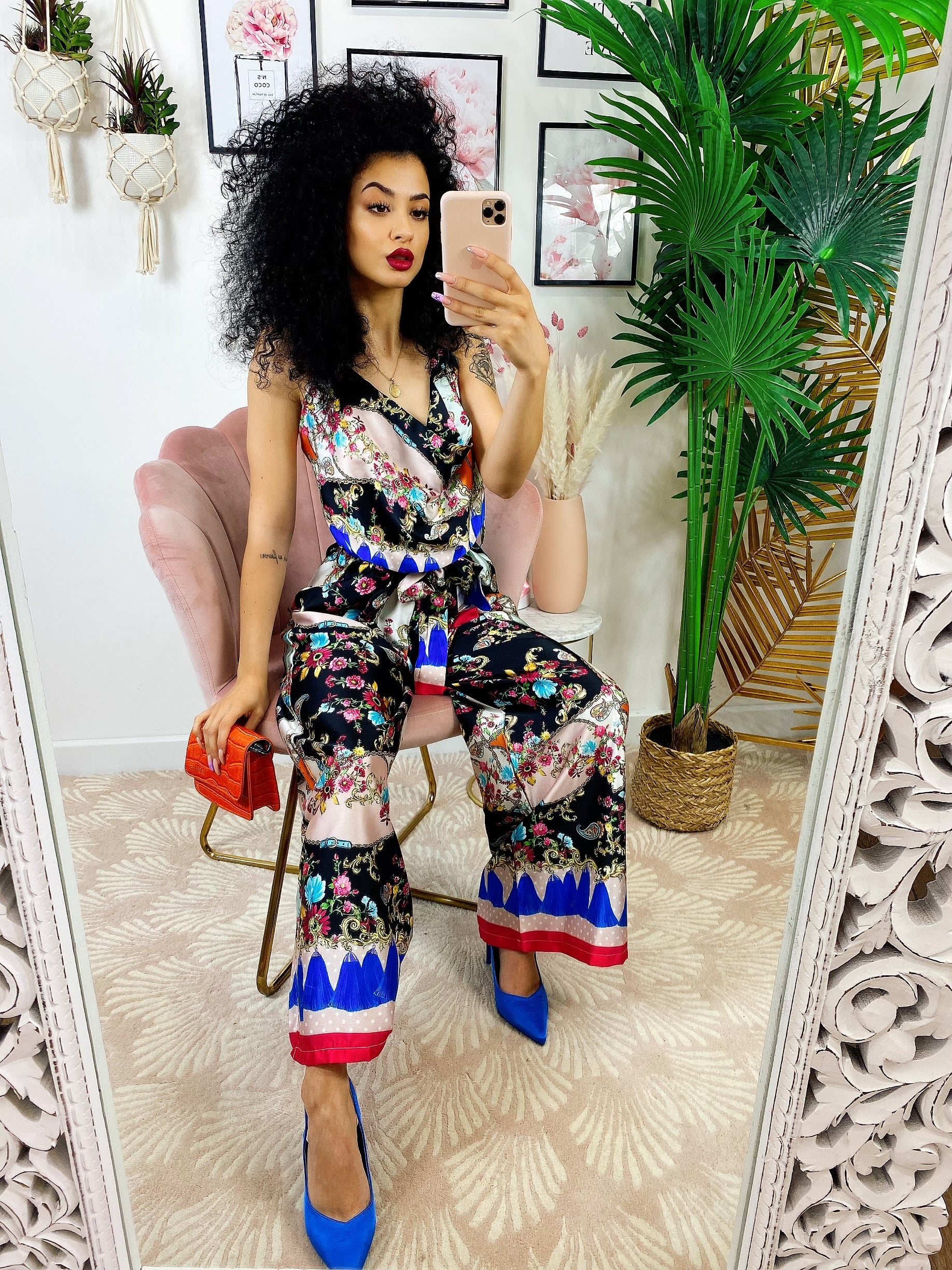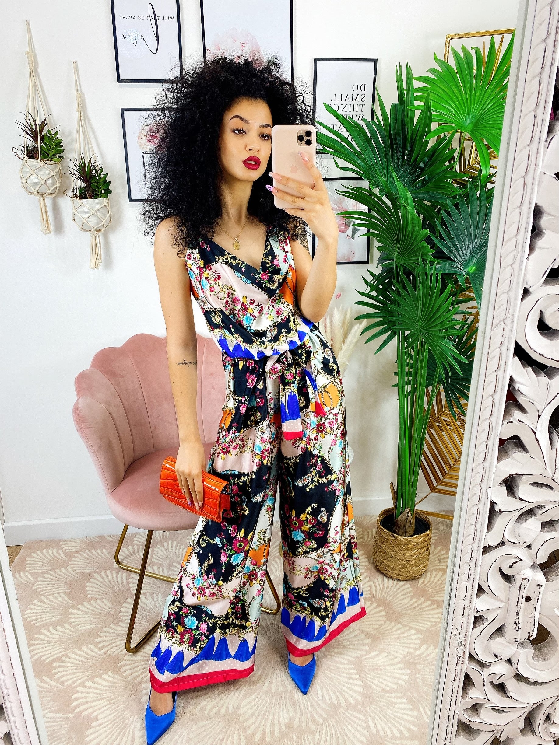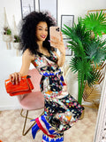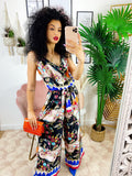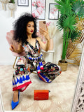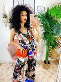Tuta floreale a fantasia comoda, elasticizzata in vita con cinturina inclusa
