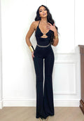 Tuta in lycra aderente e elasticizzata con gioiello sul davanti, con coppe