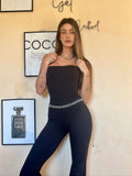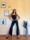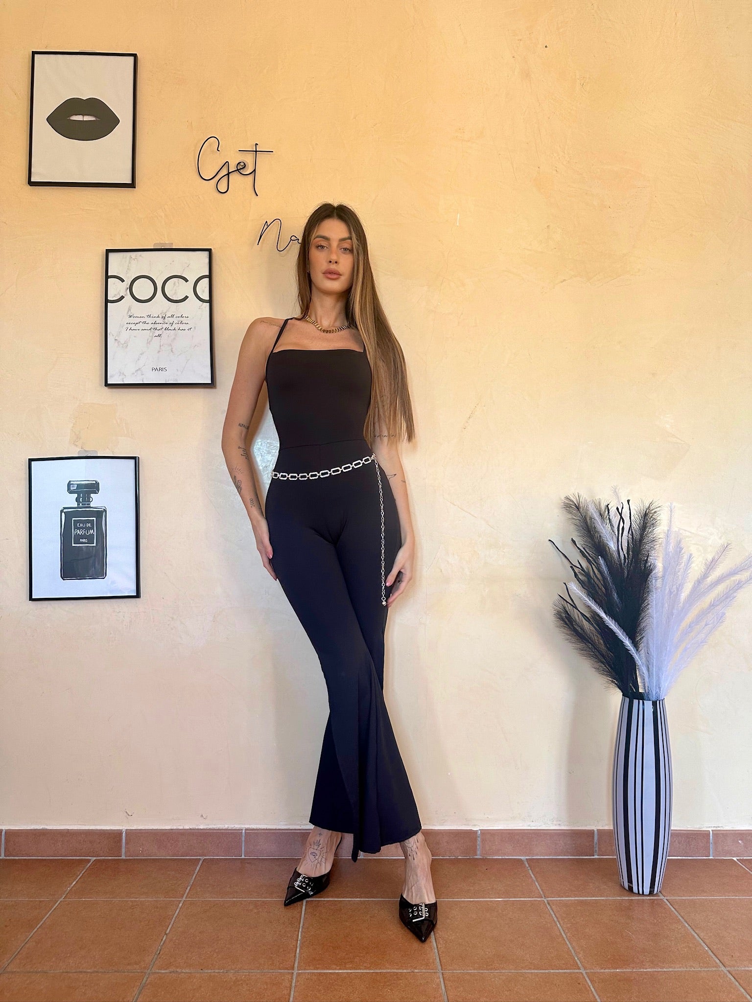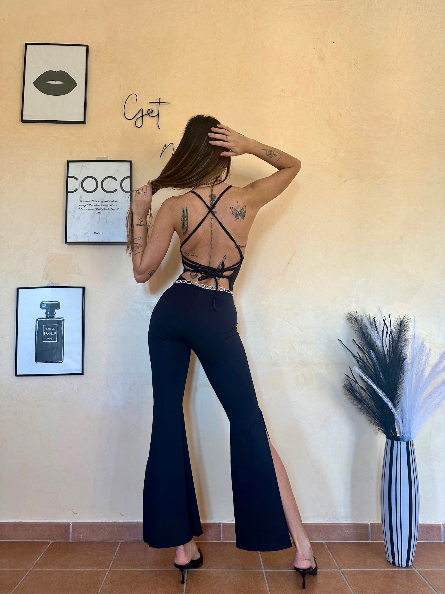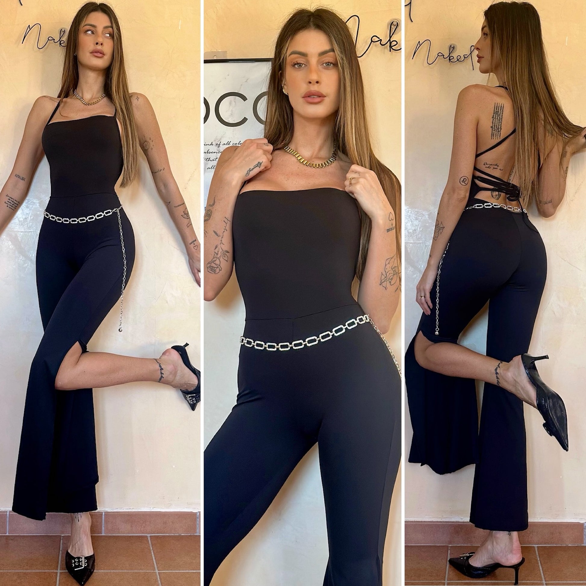Tuta in lycra senza coppe con schiena incrociata con spacchi sui pantaloni