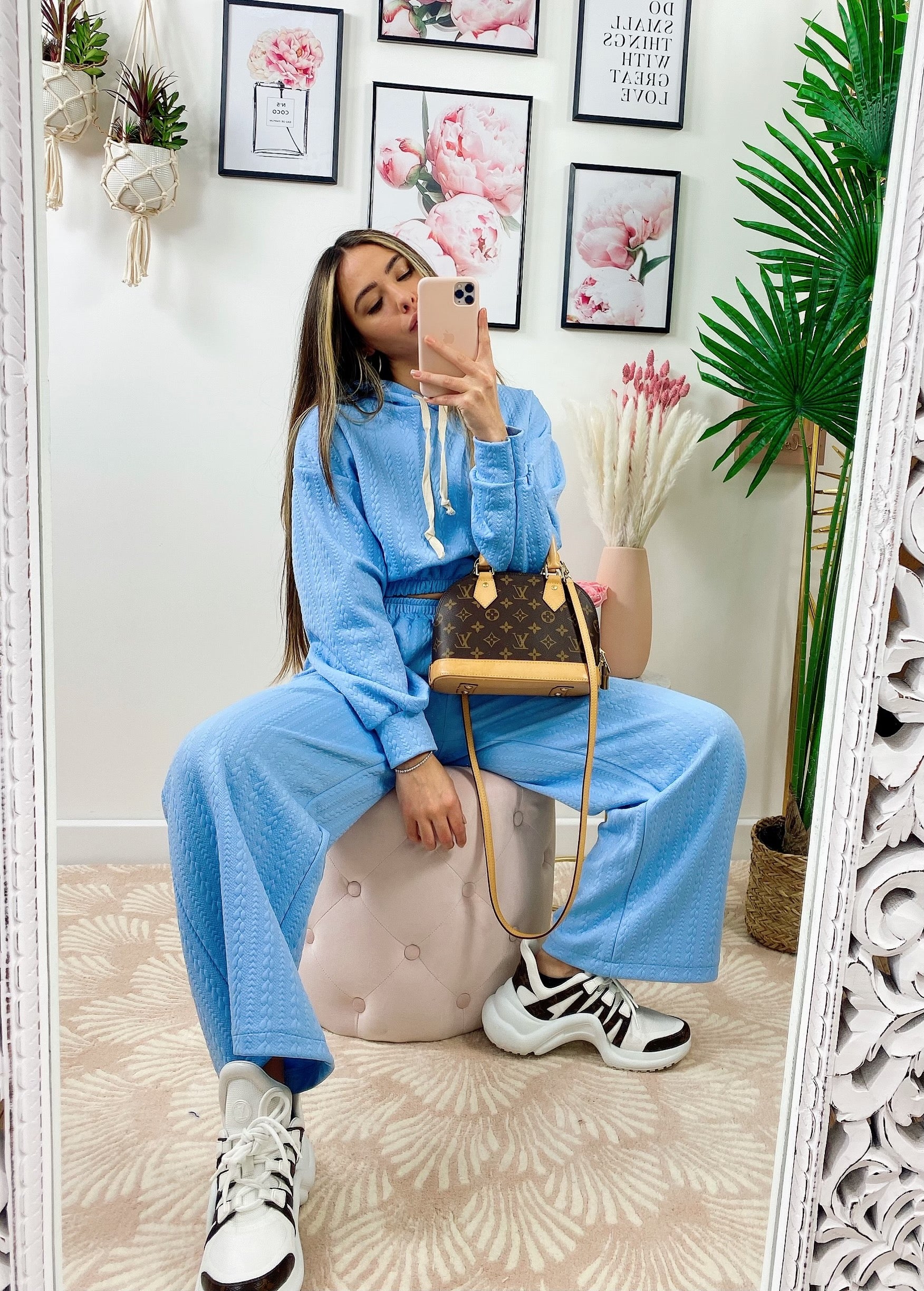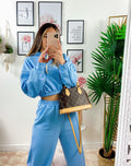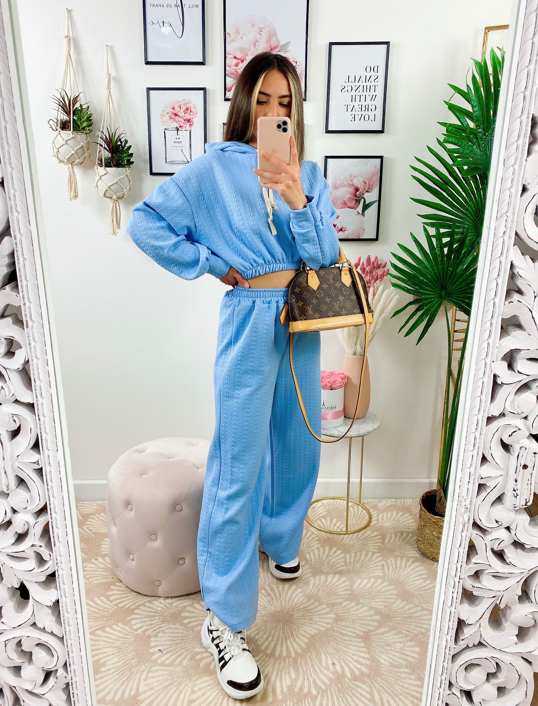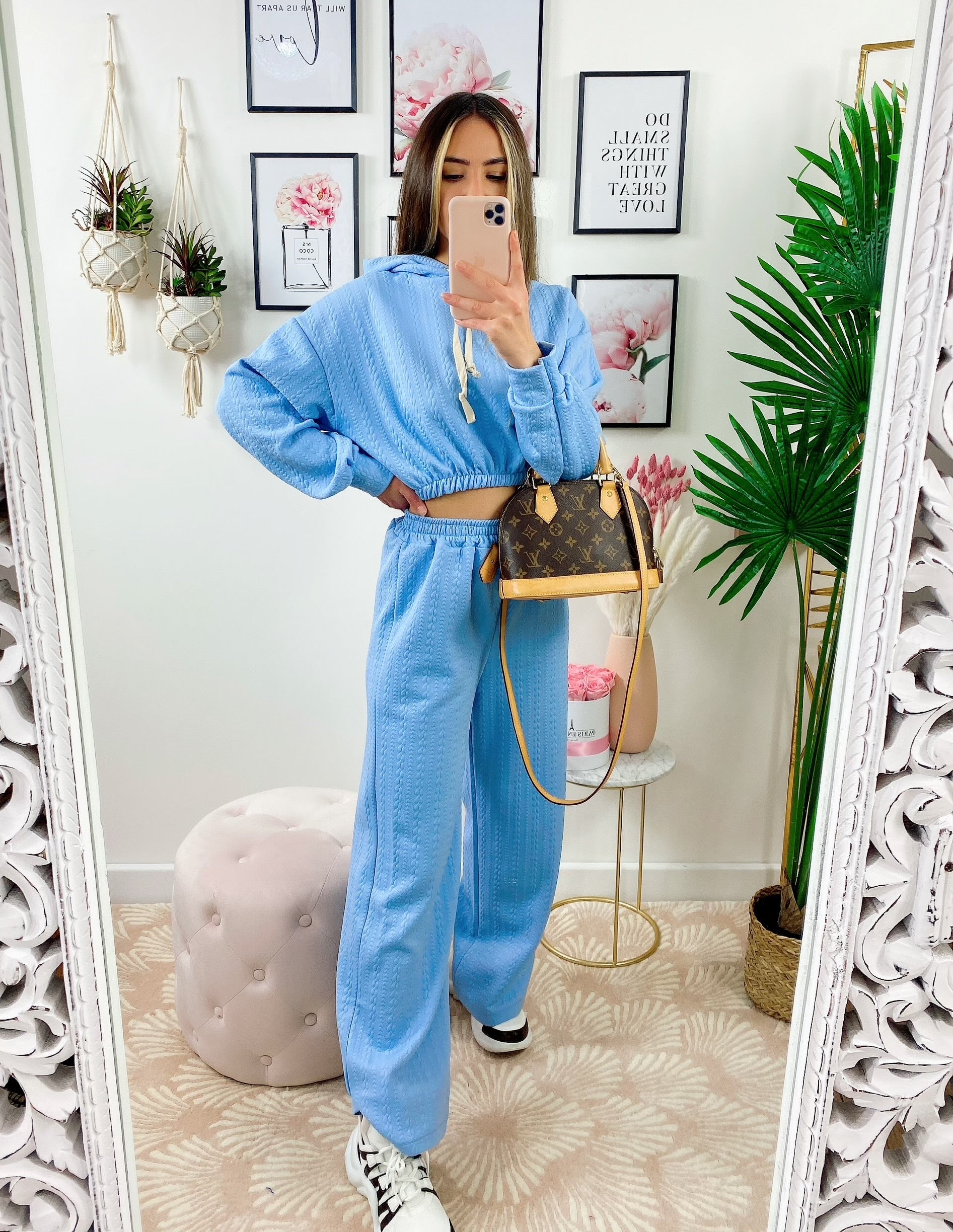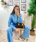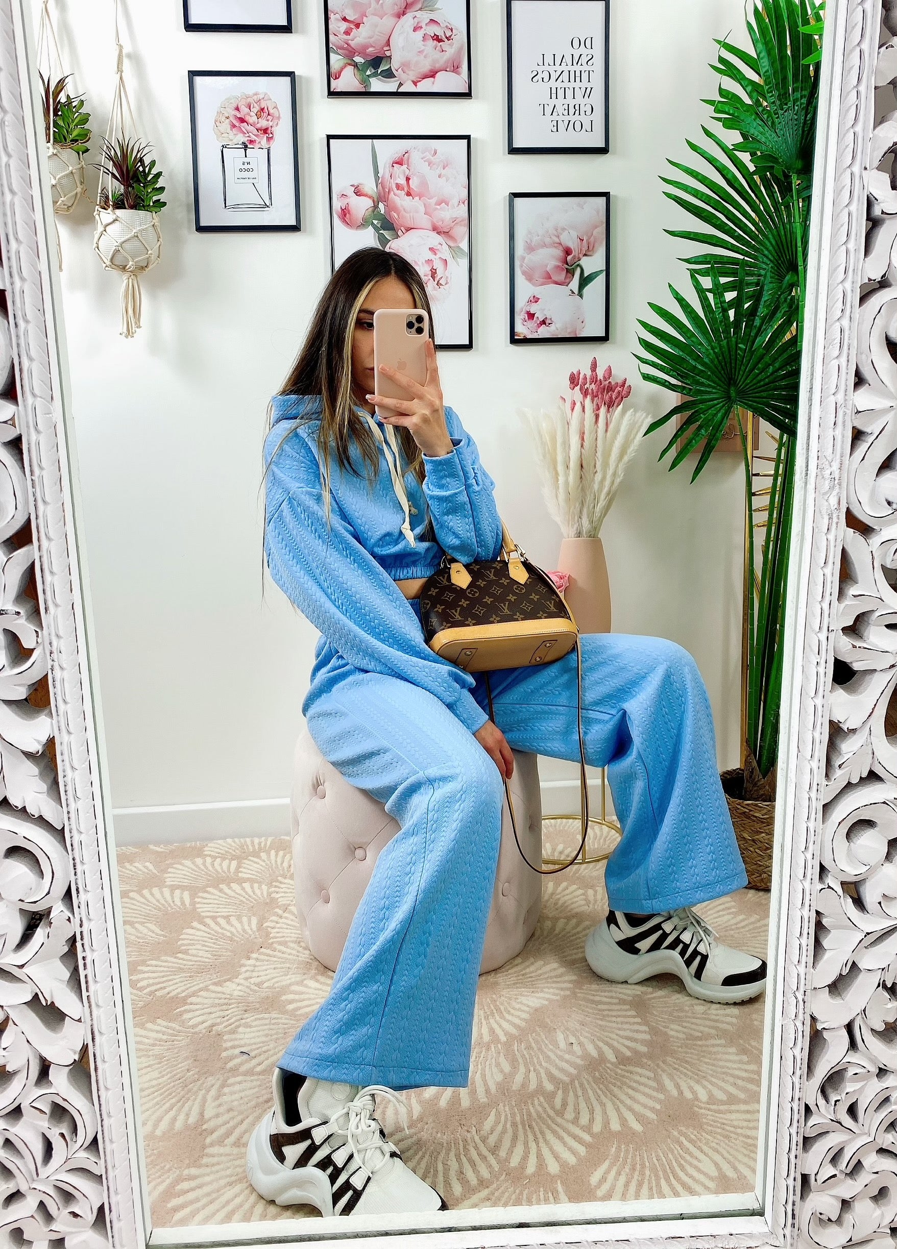 Tuta Sportiva Ricamata Carta da zucchero. Sia maglia che pantalone sono elasticizzati e molto comodi, pantalone largo sotto e felpa arricciata sotto con cappuccio.