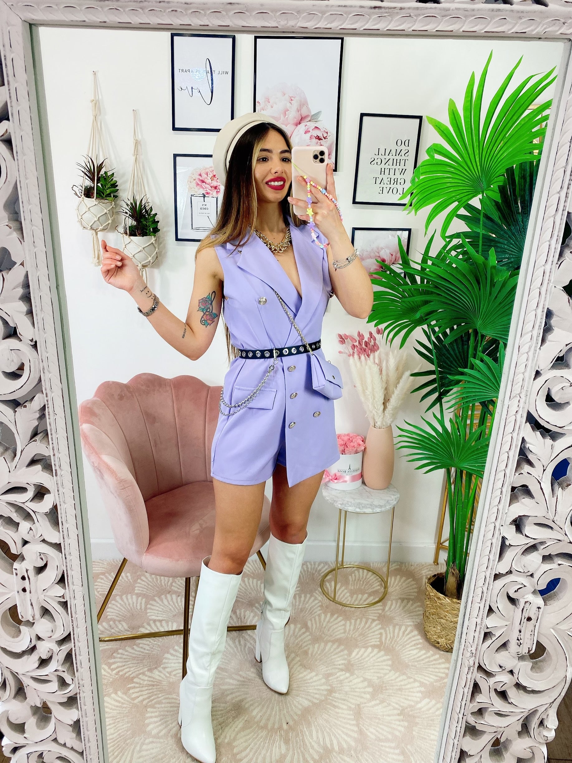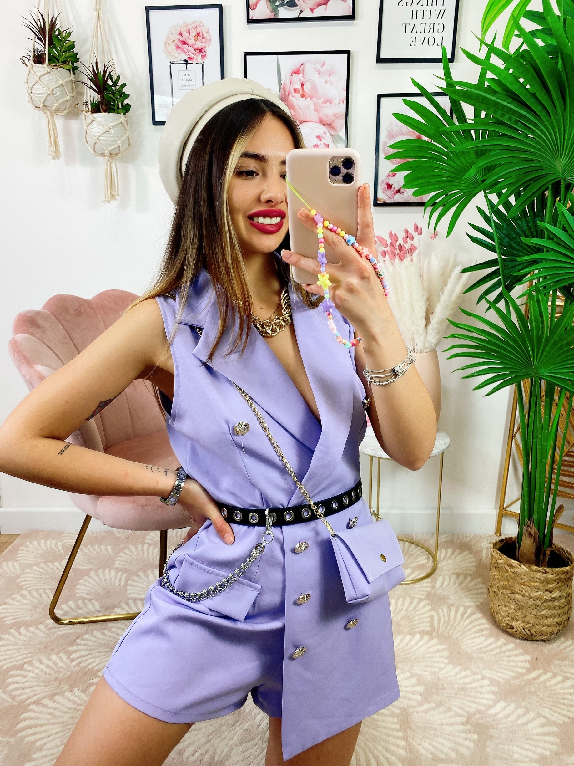 Tutina a Blazer con bottoni compresa borsetta Lilla.