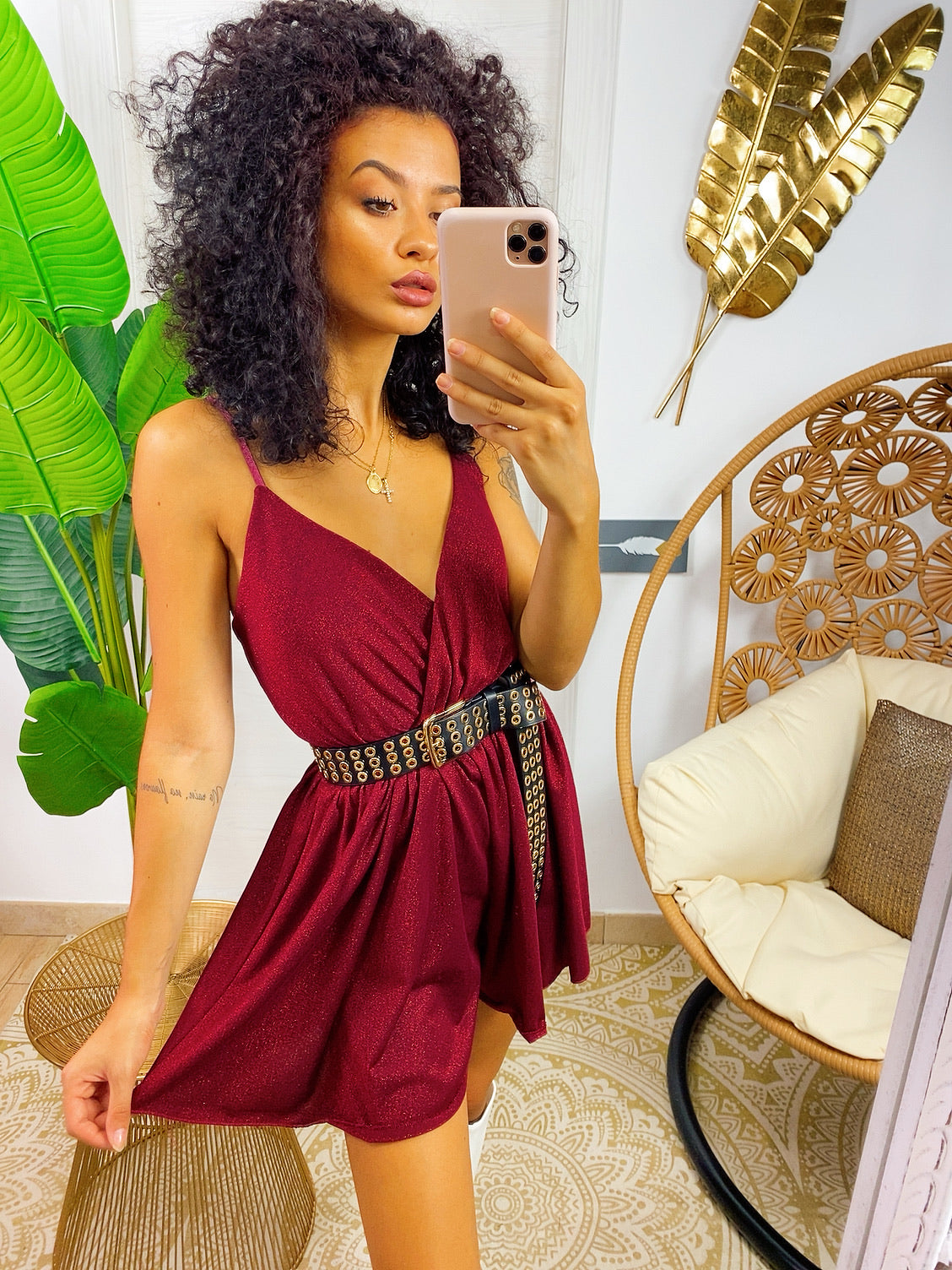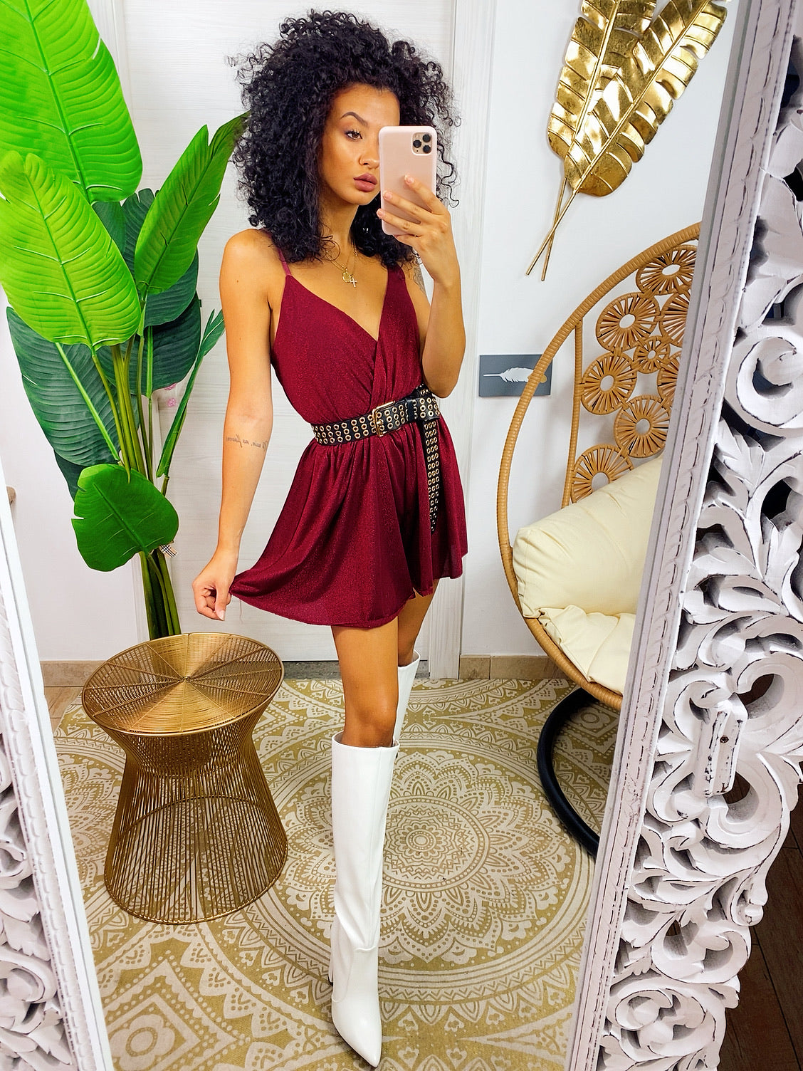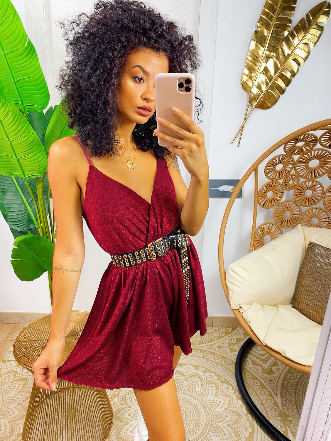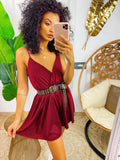 Tutina con scollo a V e bretelline regolabili, tessuto elasticizzato.