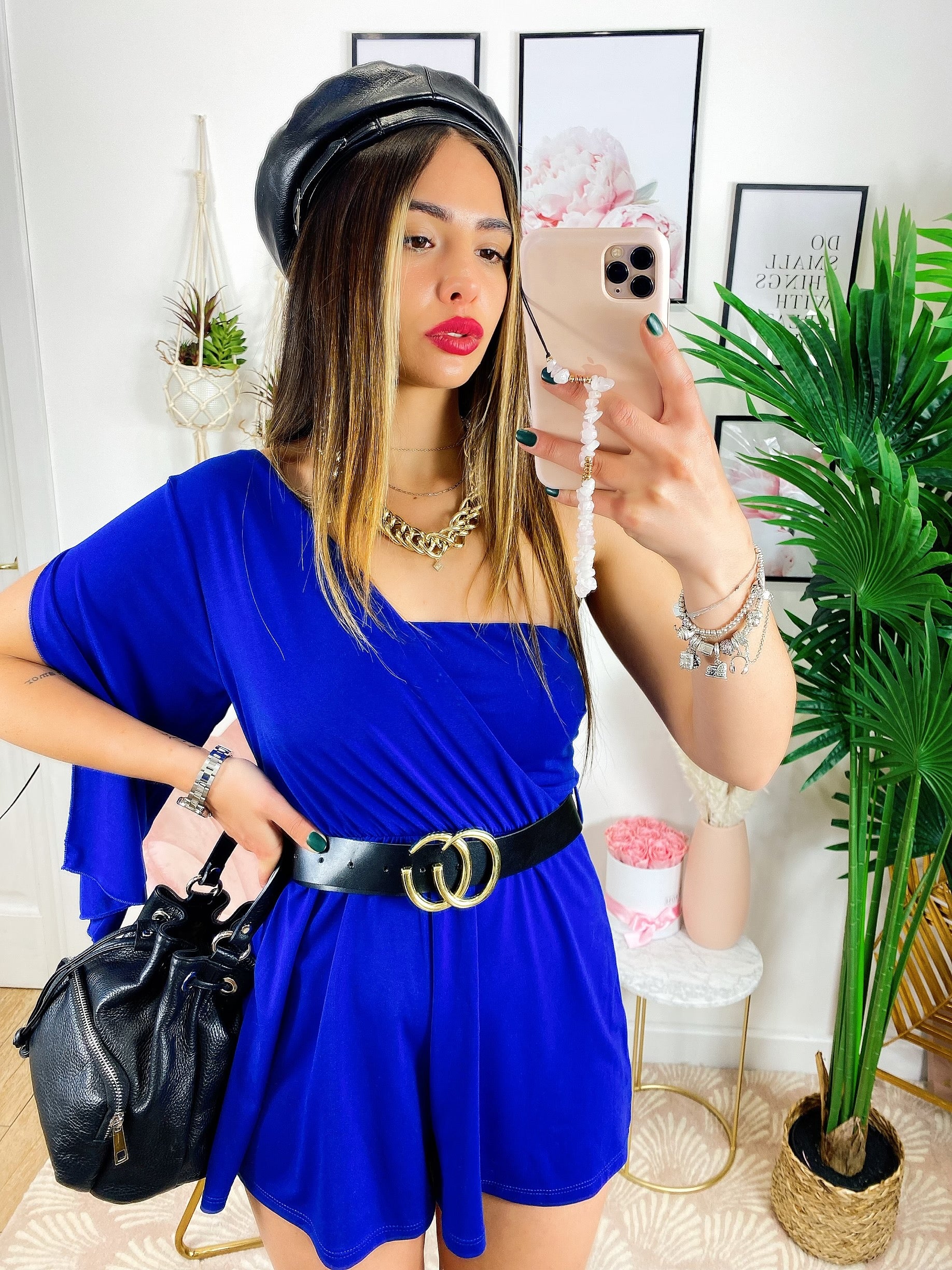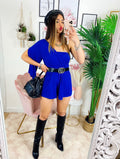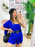 Tutina blu monospalla taglio a impero con cintura