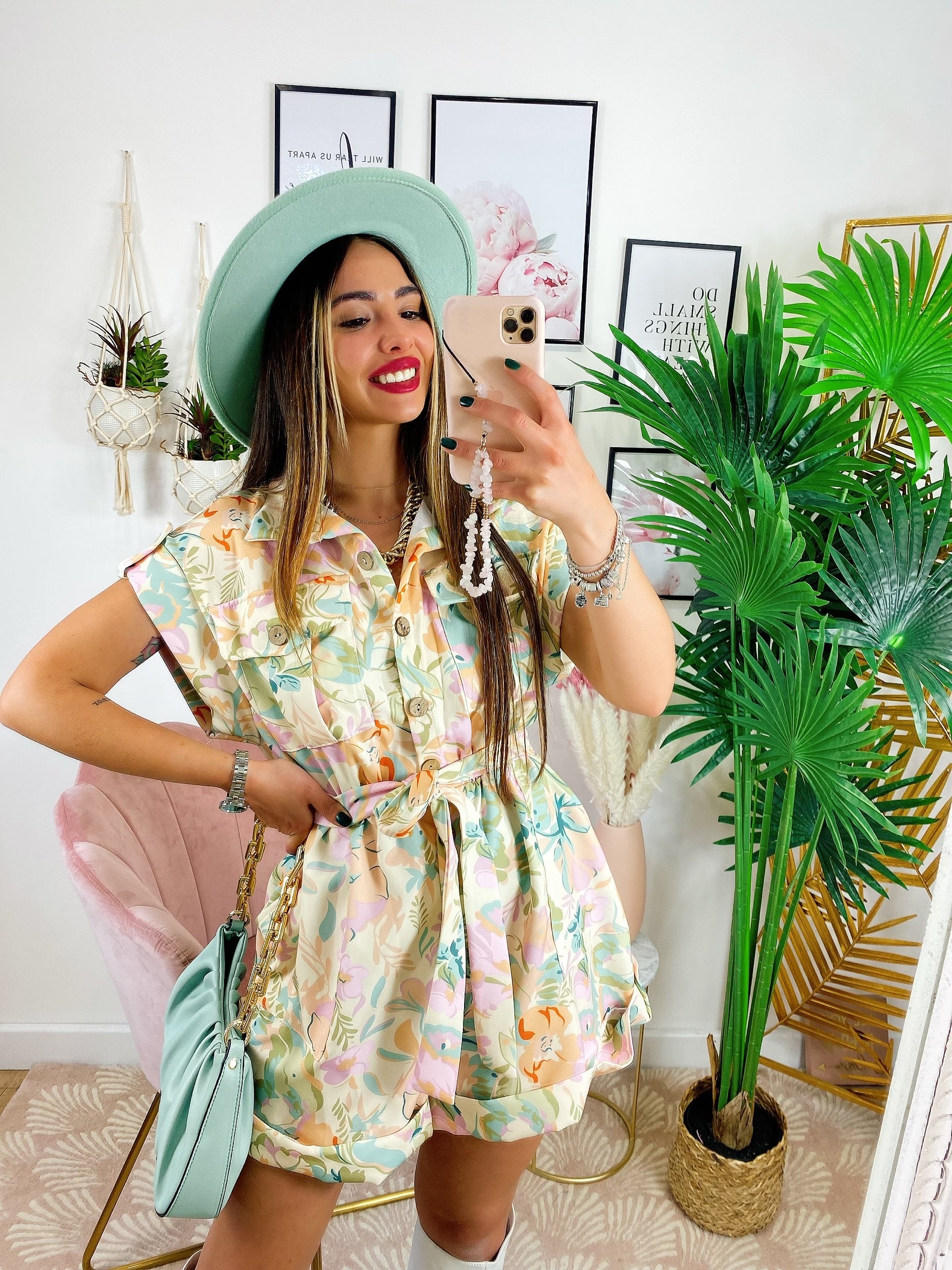 Tutina Floreale con bottoni e cintura