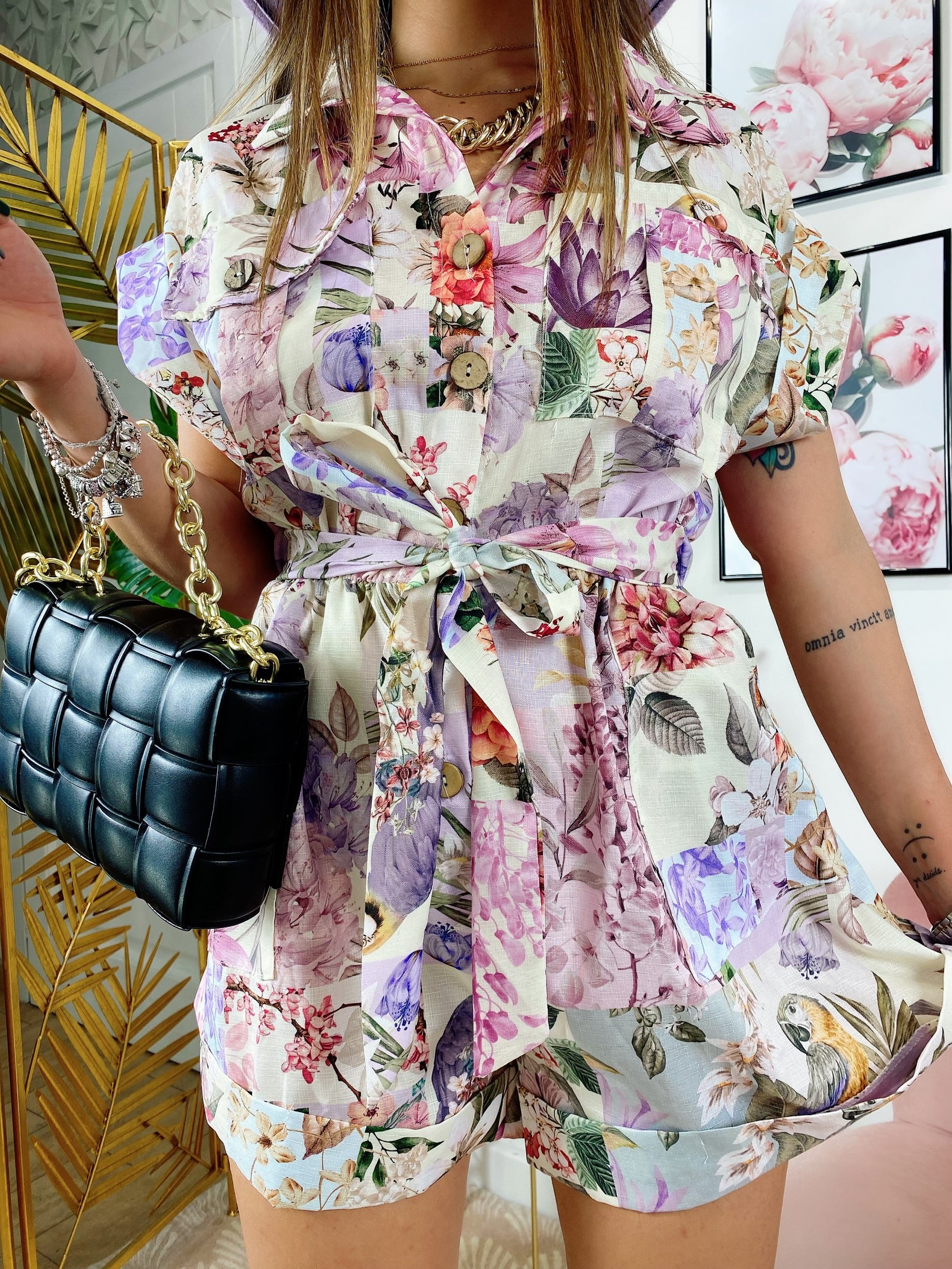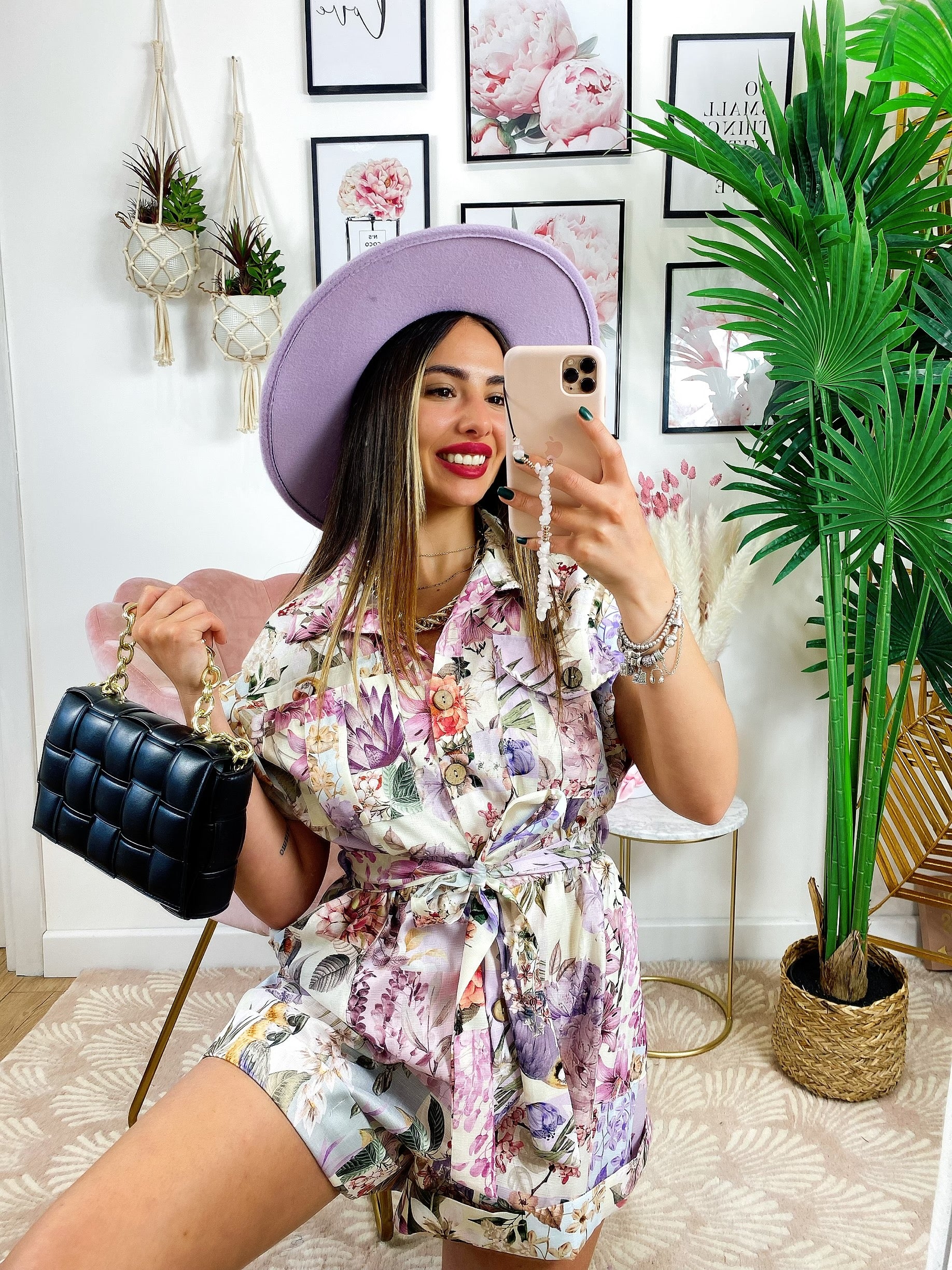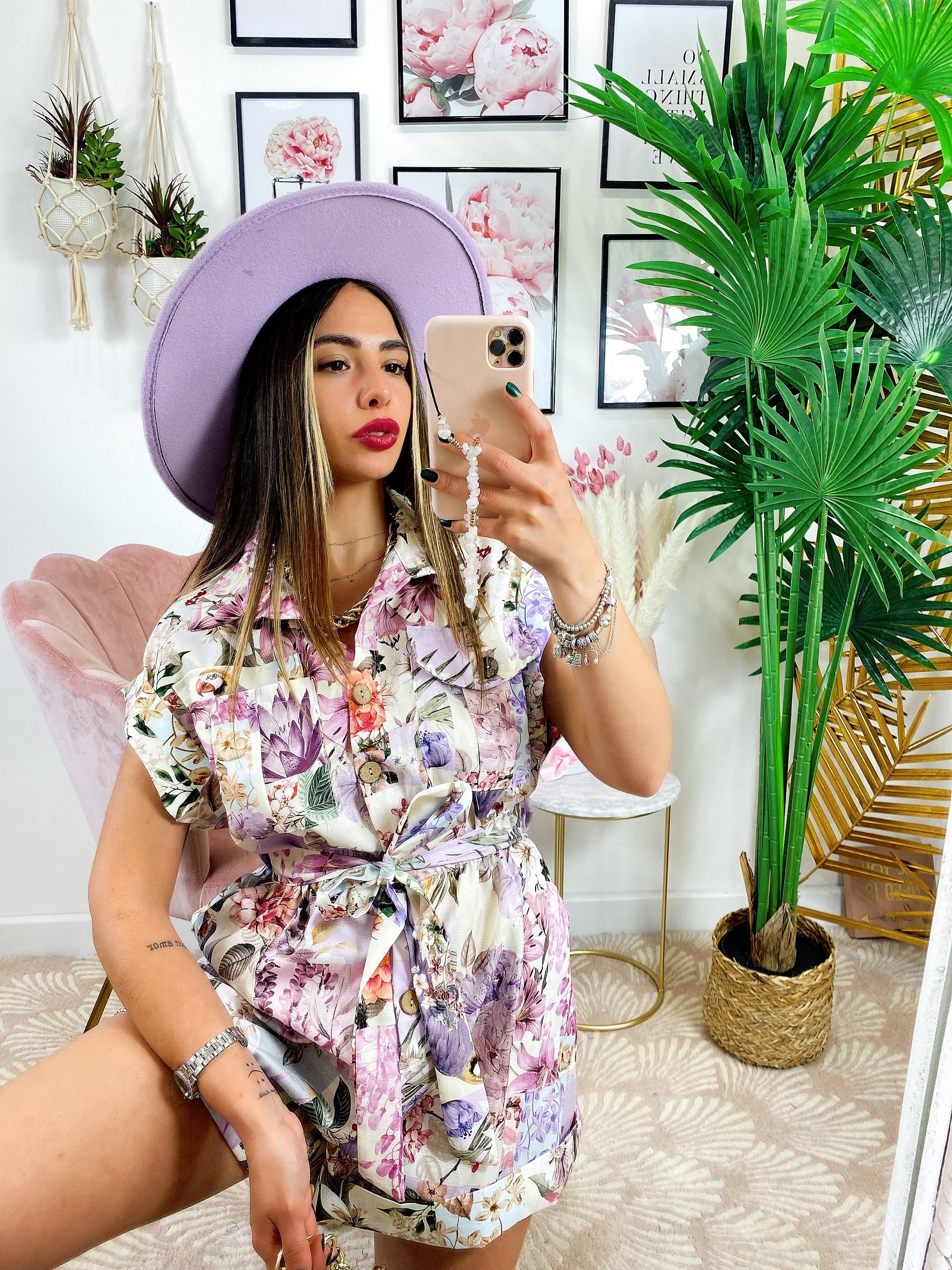 Tutina Floreale con bottoni e cintura Elasticizzata e comoda.
