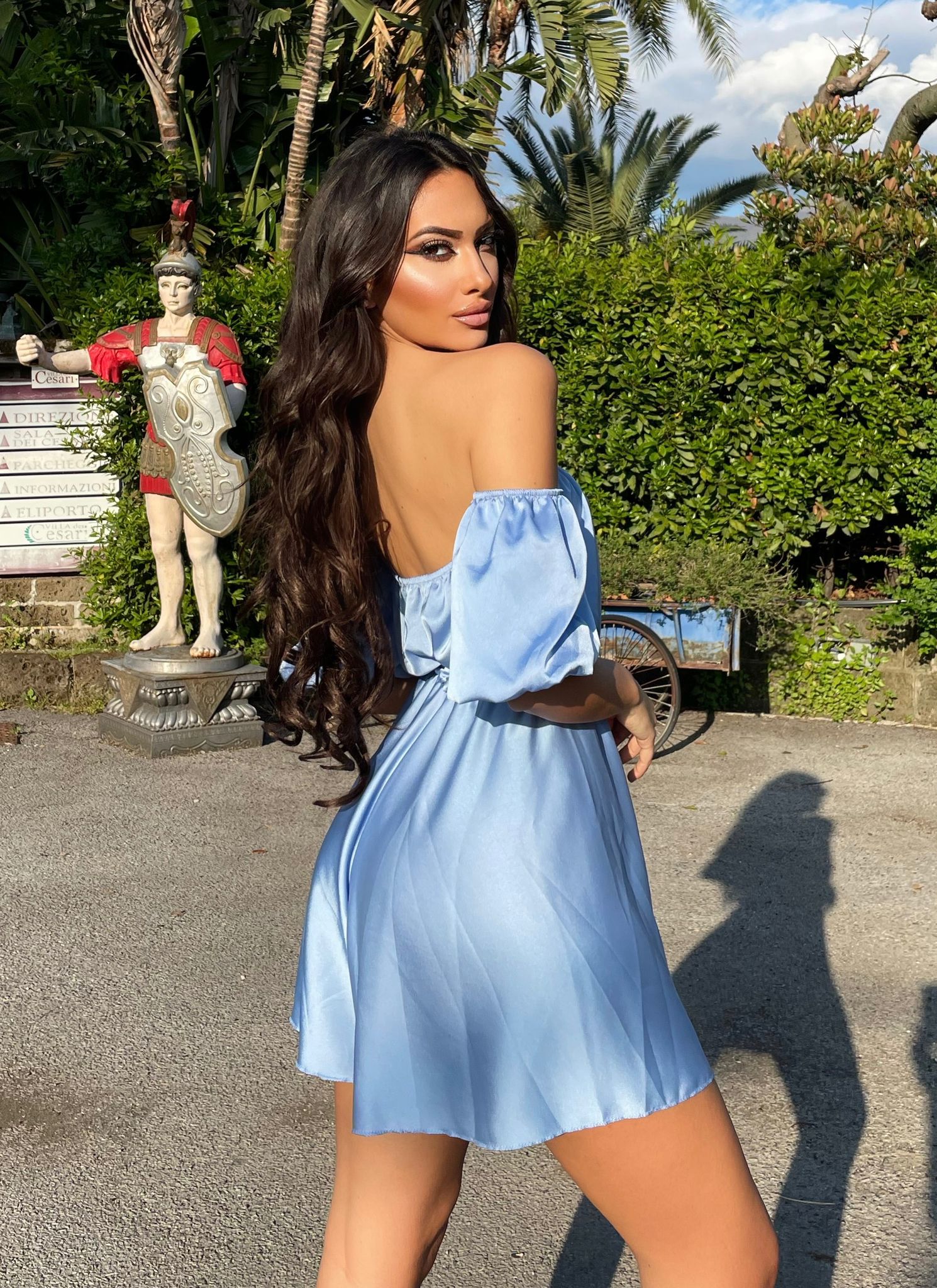 Tutina in raso con scollo a barchetta e cintura