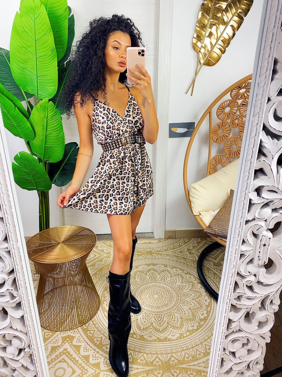 Tutina leggera in tessuto maculato, elasticizzato sul corpino. Taglia unica