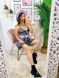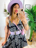 Tutina nera incrociata con ricami bianchi tessuto morbido elasticizzato