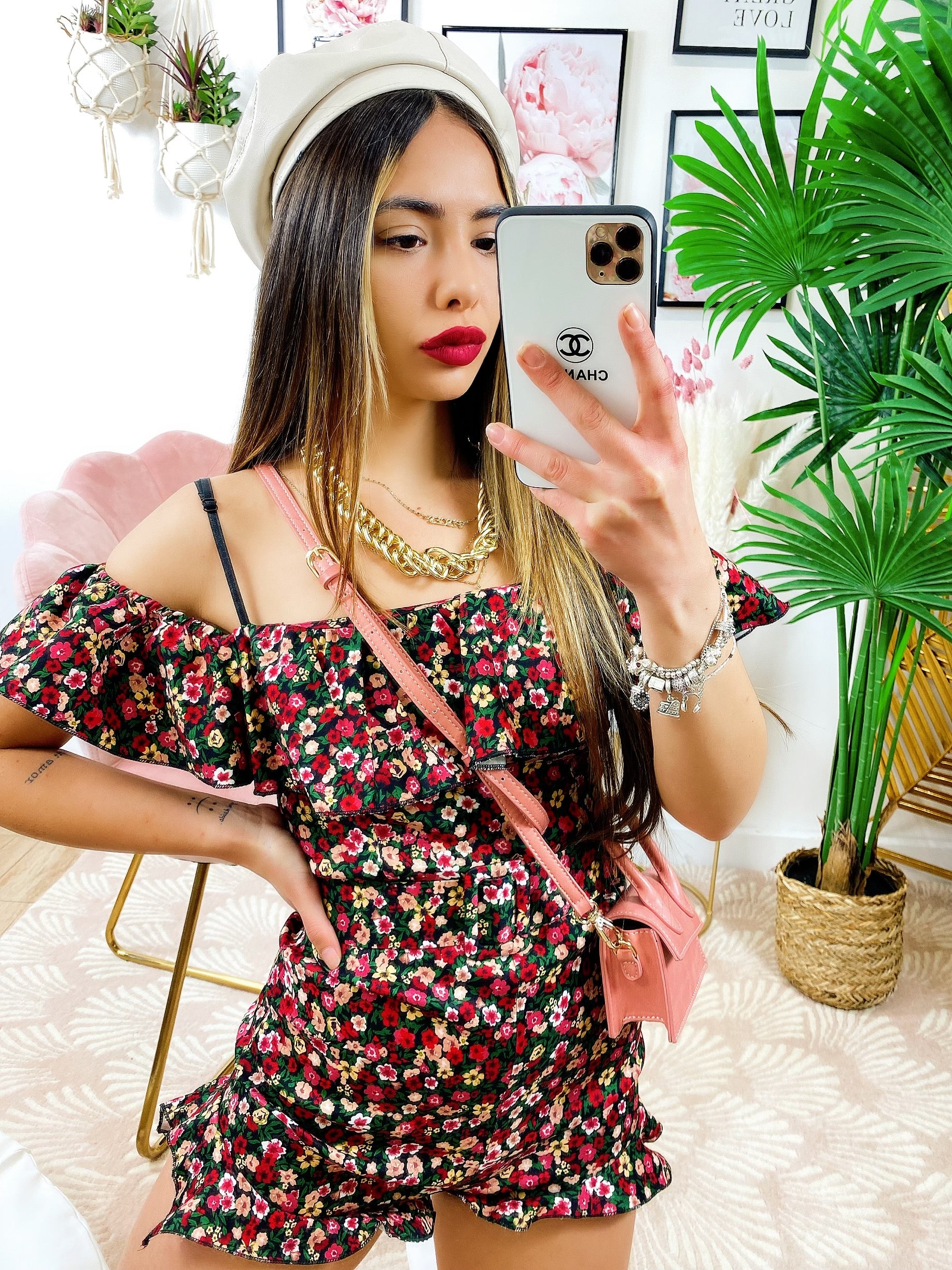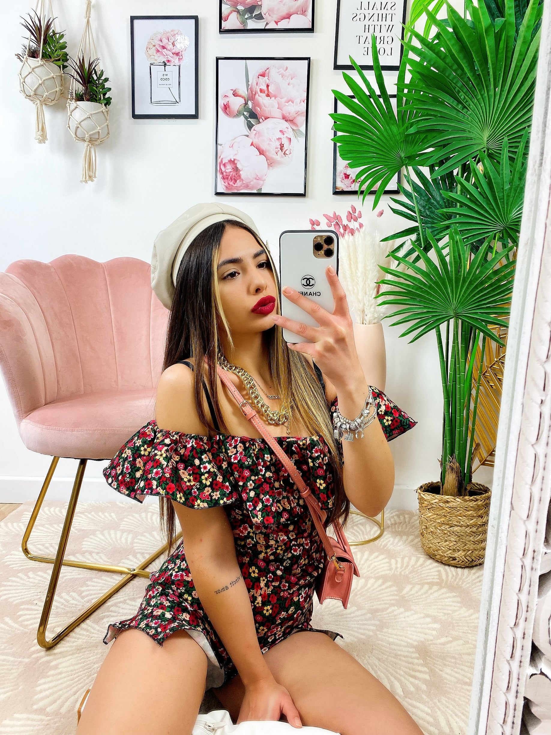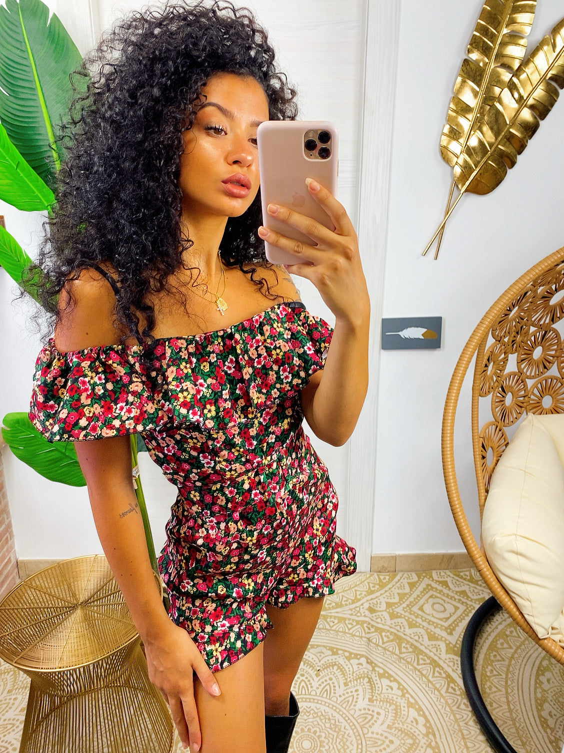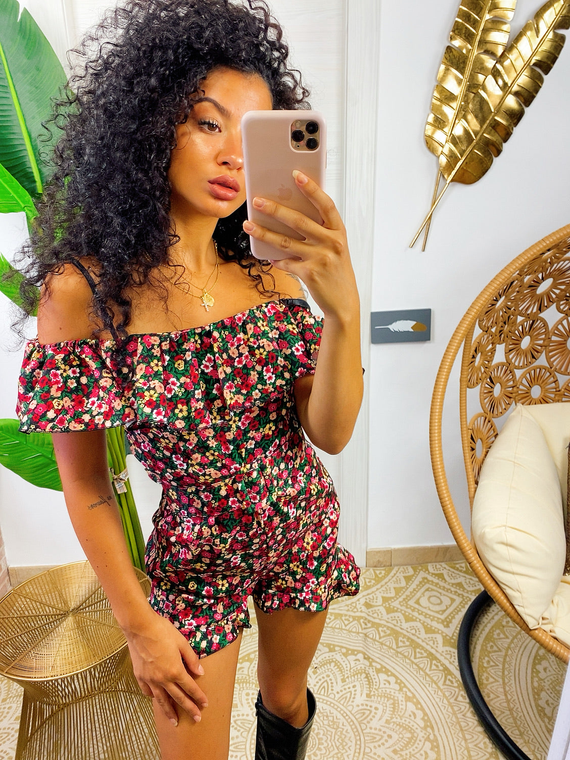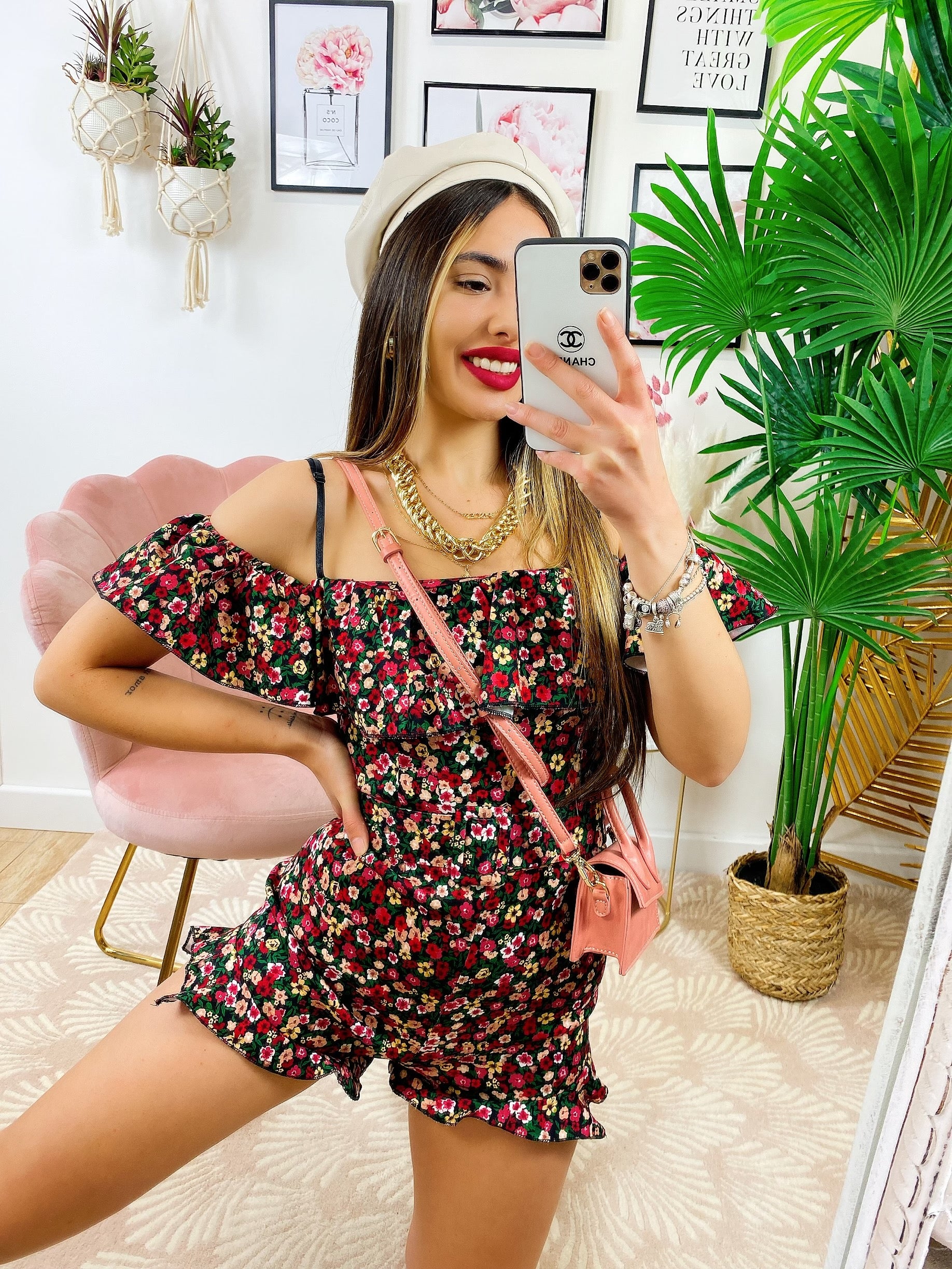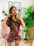 Tutina scollo a barca fiorellini Fuxia