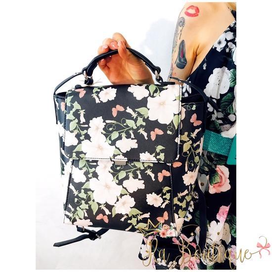 Zainetto con stampa floreale modello a cartella scolaresca. Lo zainetto E arricchito da pratiche tasche interne .